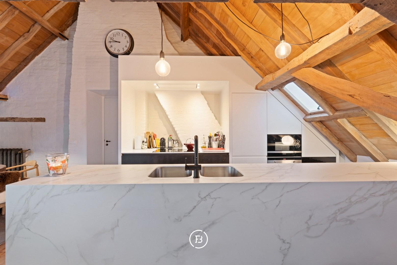 Cet appartement est le penthouse du manoir monumental du 18ème siècle restauré "het Witte Huys", situé au centre de Knesselare. L'appartement est une combinaison particulièrement réussie d'ancien et de nouveau, unique par sa belle finition en bois et par ses grandes hauteurs, ouvertes jusqu'au faîte. Dans le prix d'achat est inclus une place de parking sur le terrain. De plus, il est possible d'acheter un garage fermé (avec grenier) pour 50 000,00 EUR.