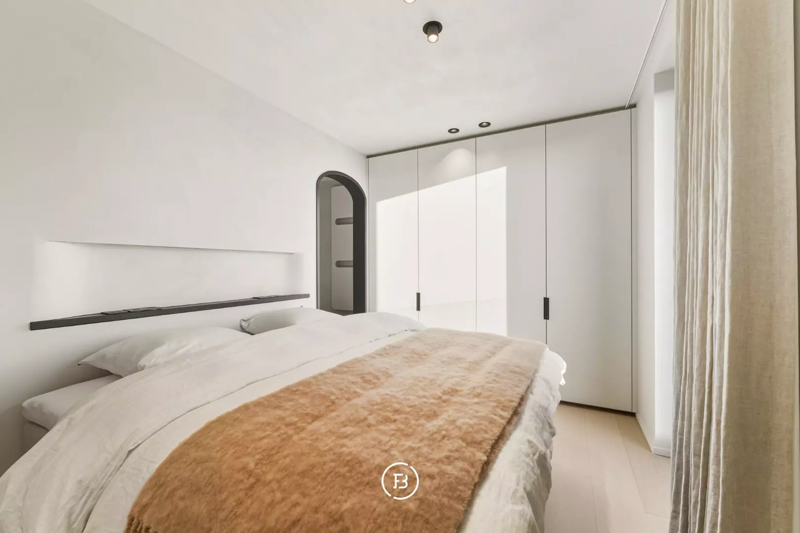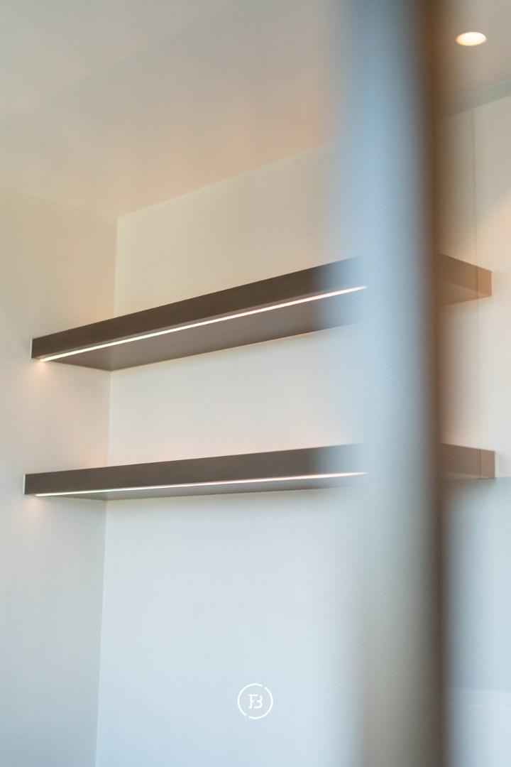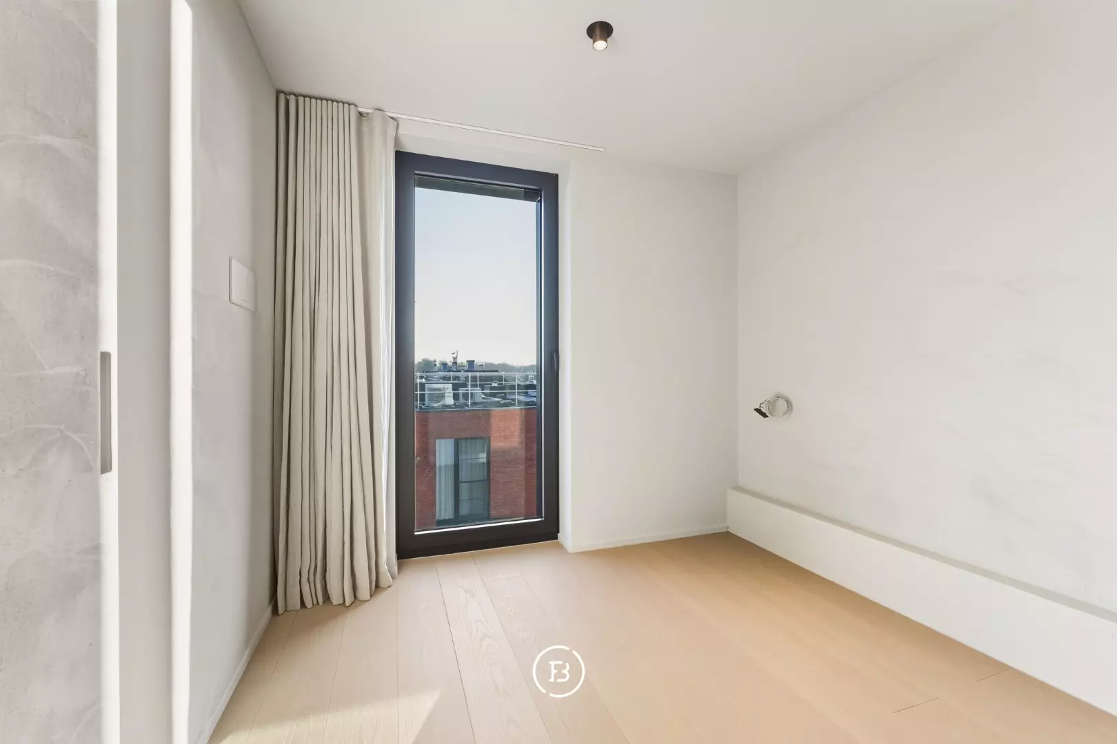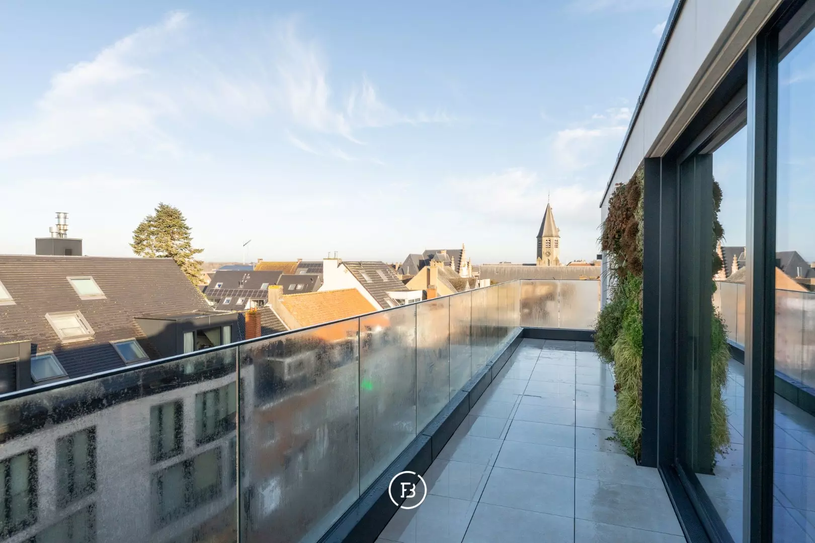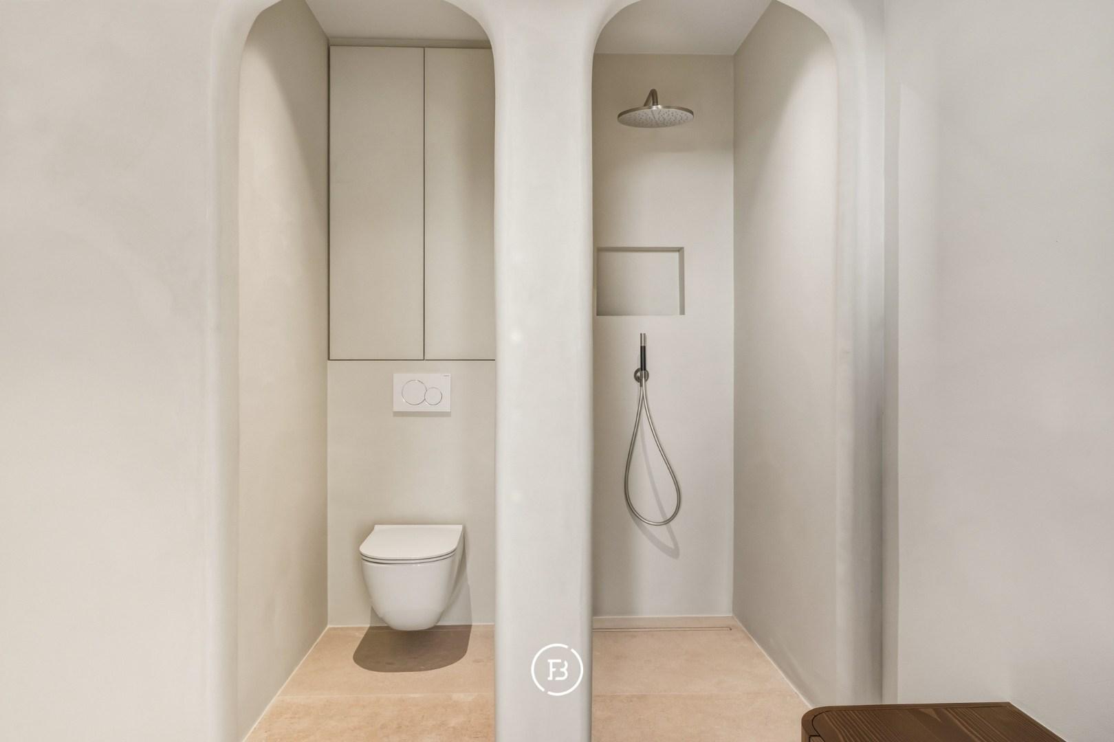 Les finitions haut de gamme incluent domotique Duotecno, luminaires Prado, pierre naturelle Vinckier, foyer Metalfire, mobilier et cuisine sur mesure Devriese et habillage de fenêtres Tyyli. Reprise du mobilier possible, rendant le penthouse quasi clé en main.
