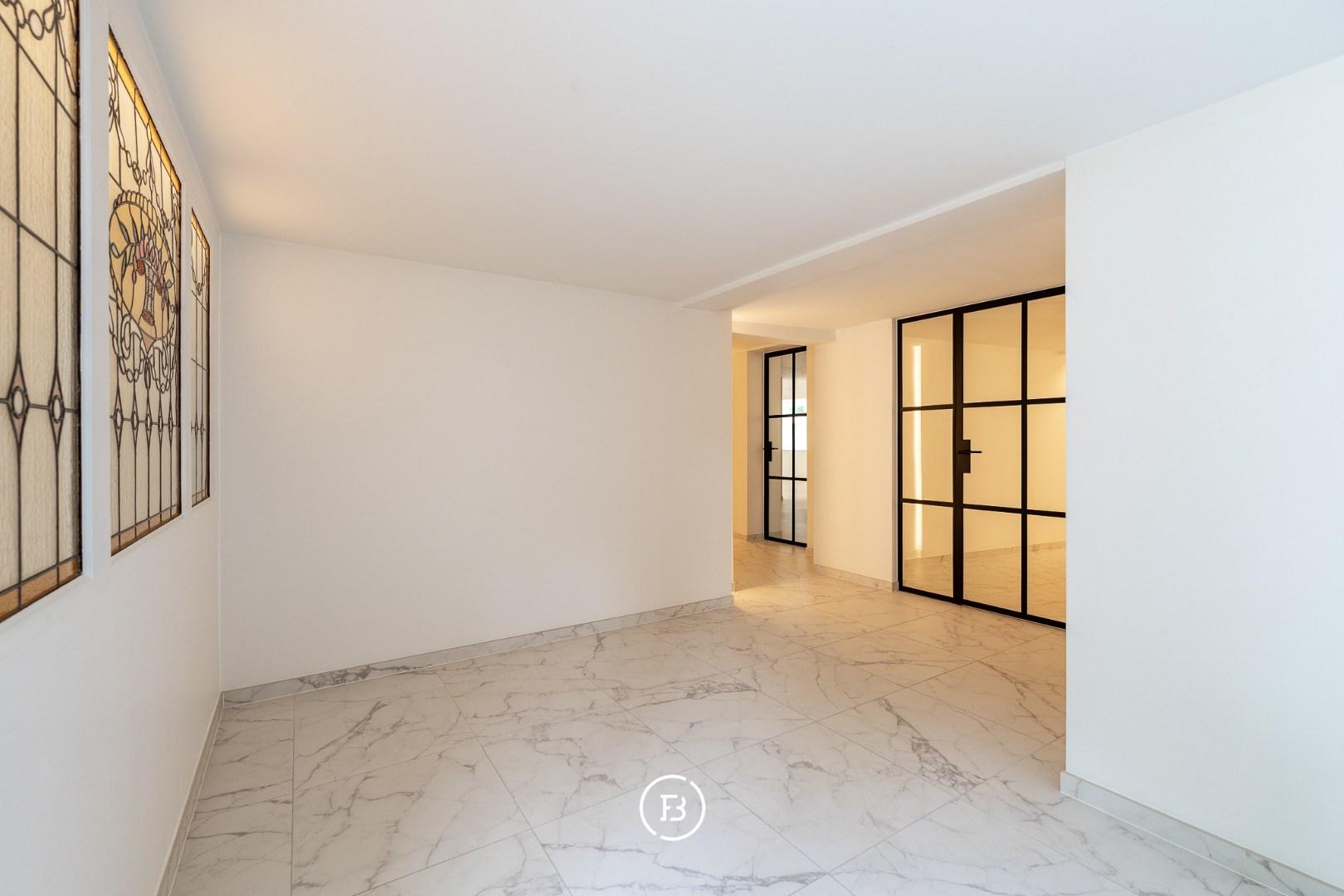 À l'intérieur, vous êtes accueilli par des mosaïques de sol en marbre, des revêtements muraux élégants et un escalier en bois provenant de la maison de vacances suisse de Gustave Eiffel. Les matériaux authentiques y sont harmonieusement associés au confort moderne, avec notamment un chauffage au sol et un label PEB économe de catégorie B.