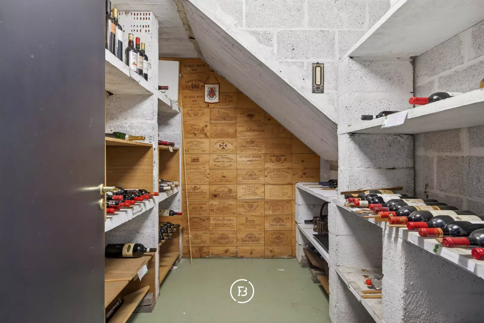 Double garage, local à vélos, local technique, buanderie, cave à vin.
