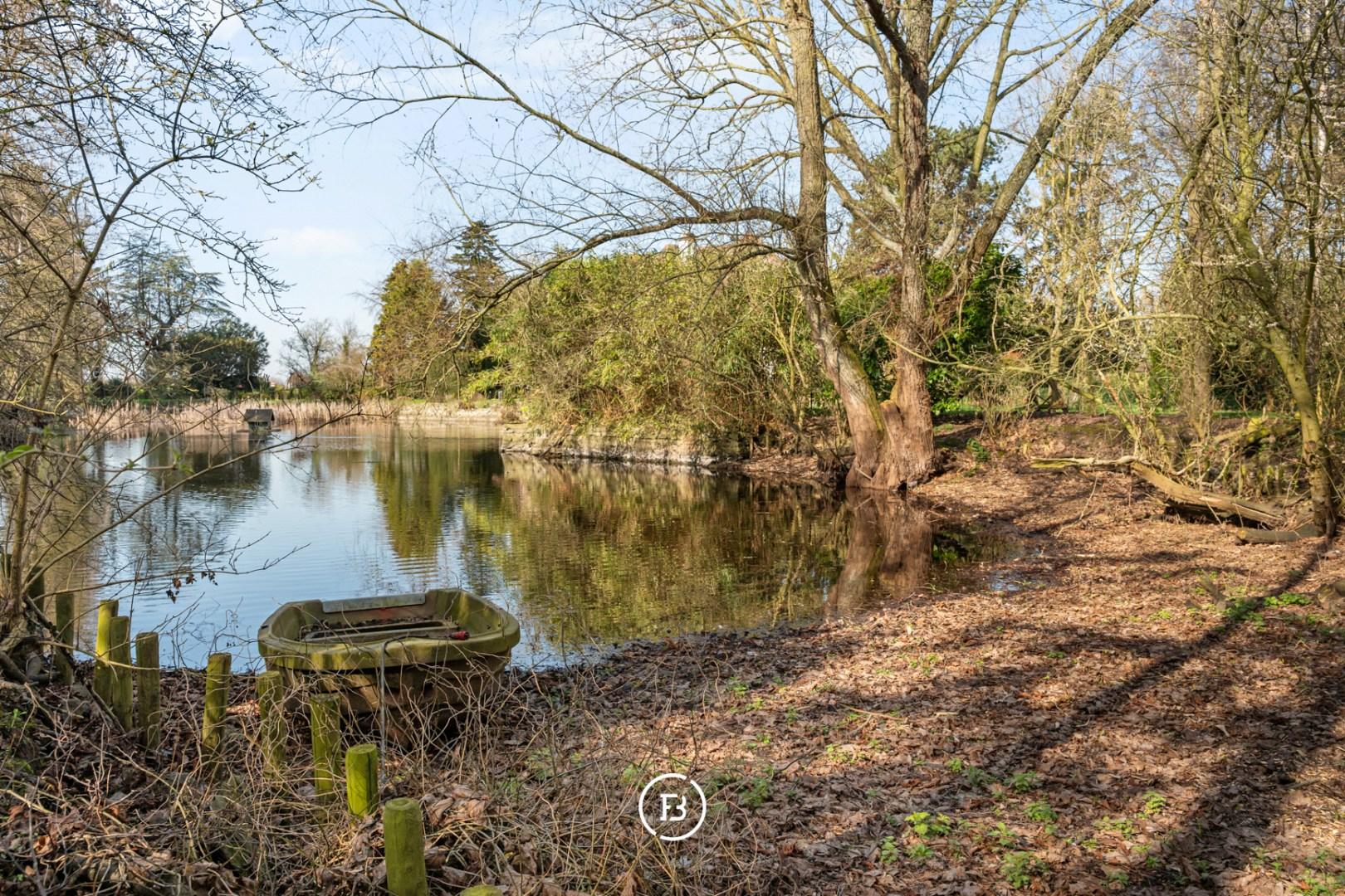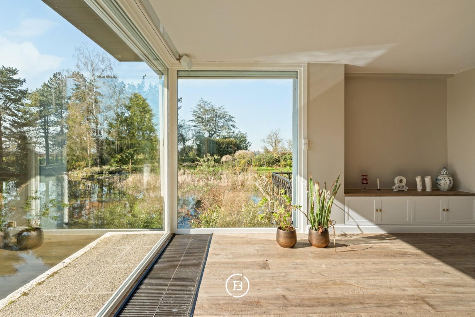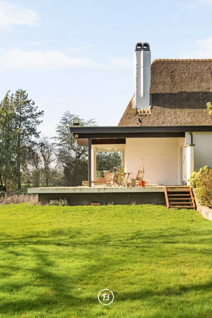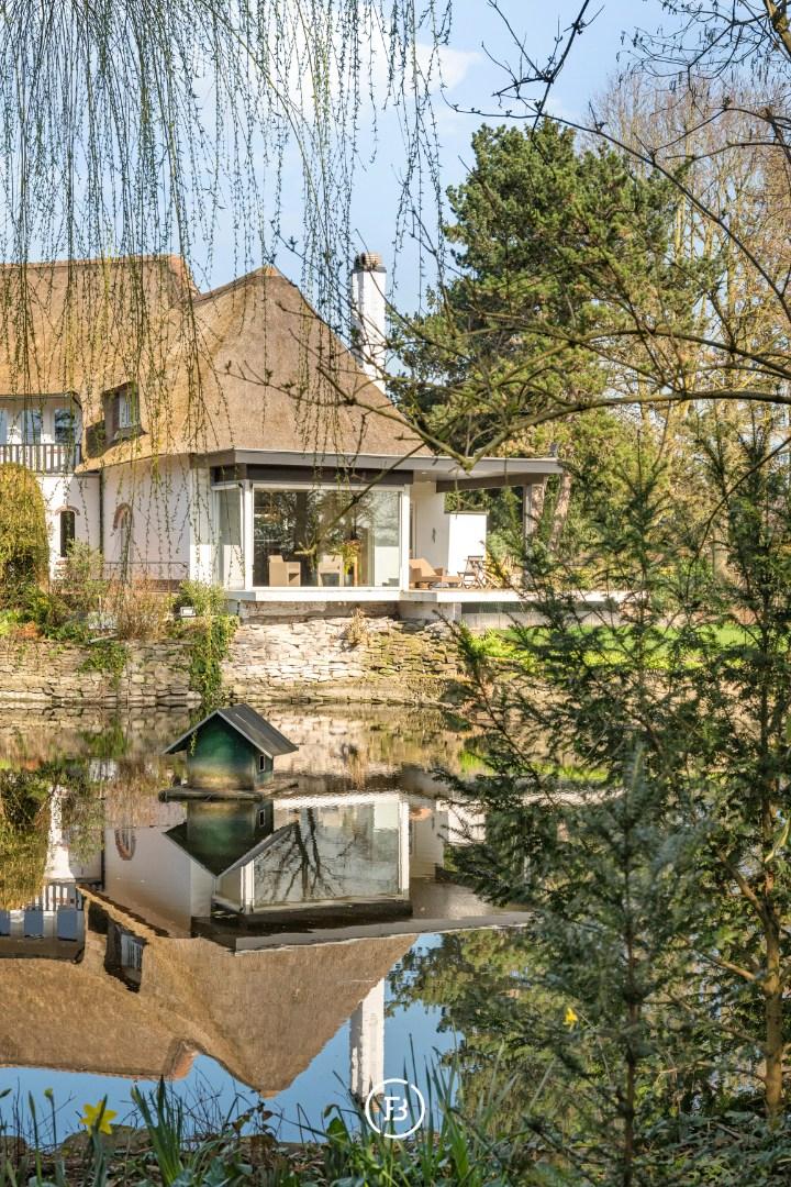 Au milieu d'un domaine de près de 10 000 m², caché de la route, nous trouvons cette magnifique maison de campagne qui vient de subir une rénovation complète. Un immense étang de 3 000 m², un jardin paysager, un verger, un potager et même un petit bois font du jardin un véritable paradis. Une extension en verre du salon donne sur ce magnifique jardin et l'étang avec son hôtel à canards, invitant à y passer la journée entière.
