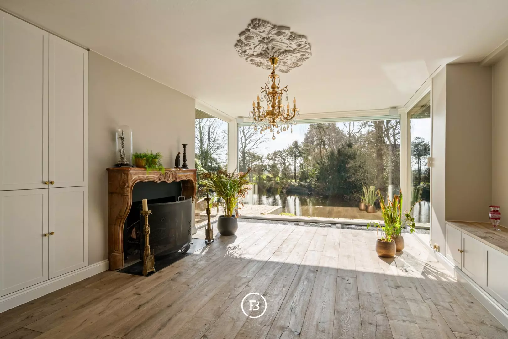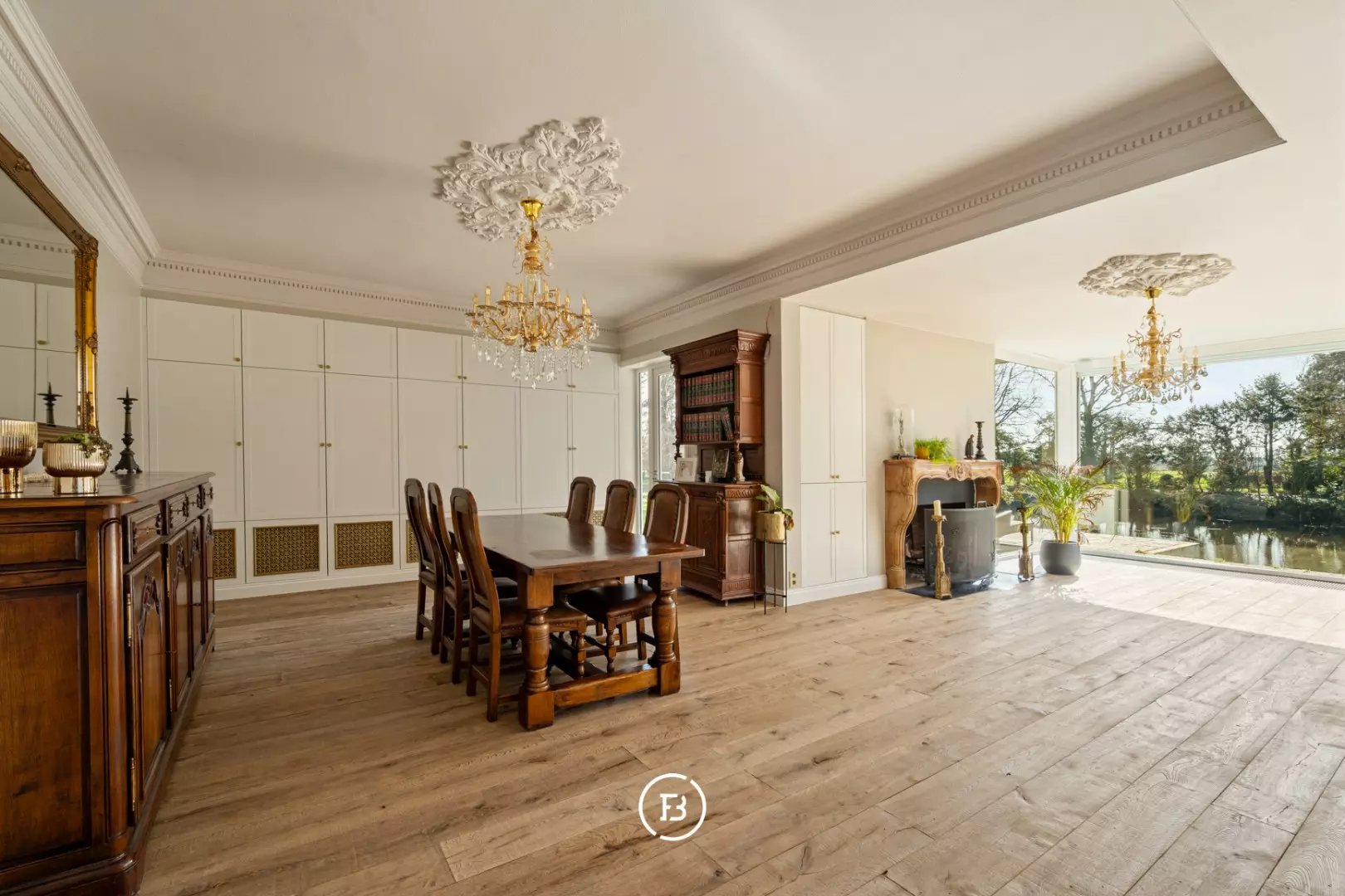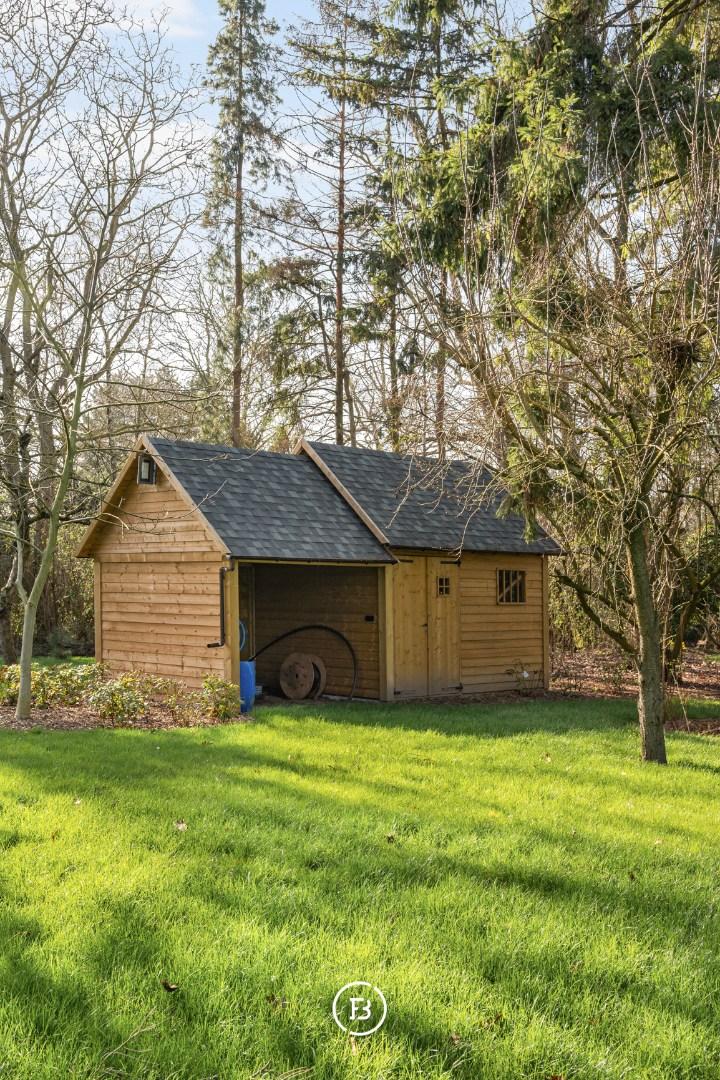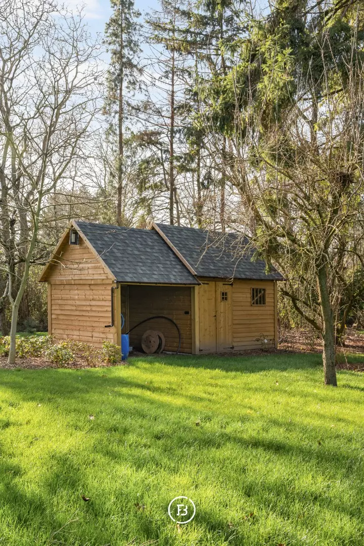 Au milieu d'un domaine de près de 10 000 m², caché de la route, nous trouvons cette magnifique maison de campagne qui vient de subir une rénovation complète. Un immense étang de 3 000 m², un jardin paysager, un verger, un potager et même un petit bois font du jardin un véritable paradis. Une extension en verre du salon donne sur ce magnifique jardin et l'étang avec son hôtel à canards, invitant à y passer la journée entière.
