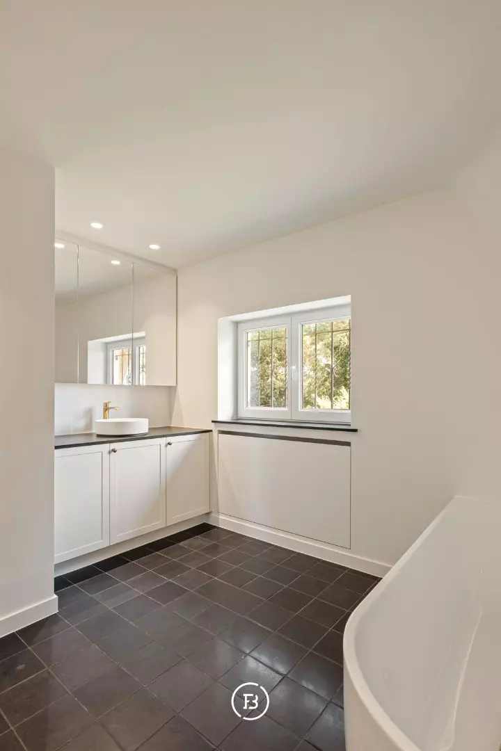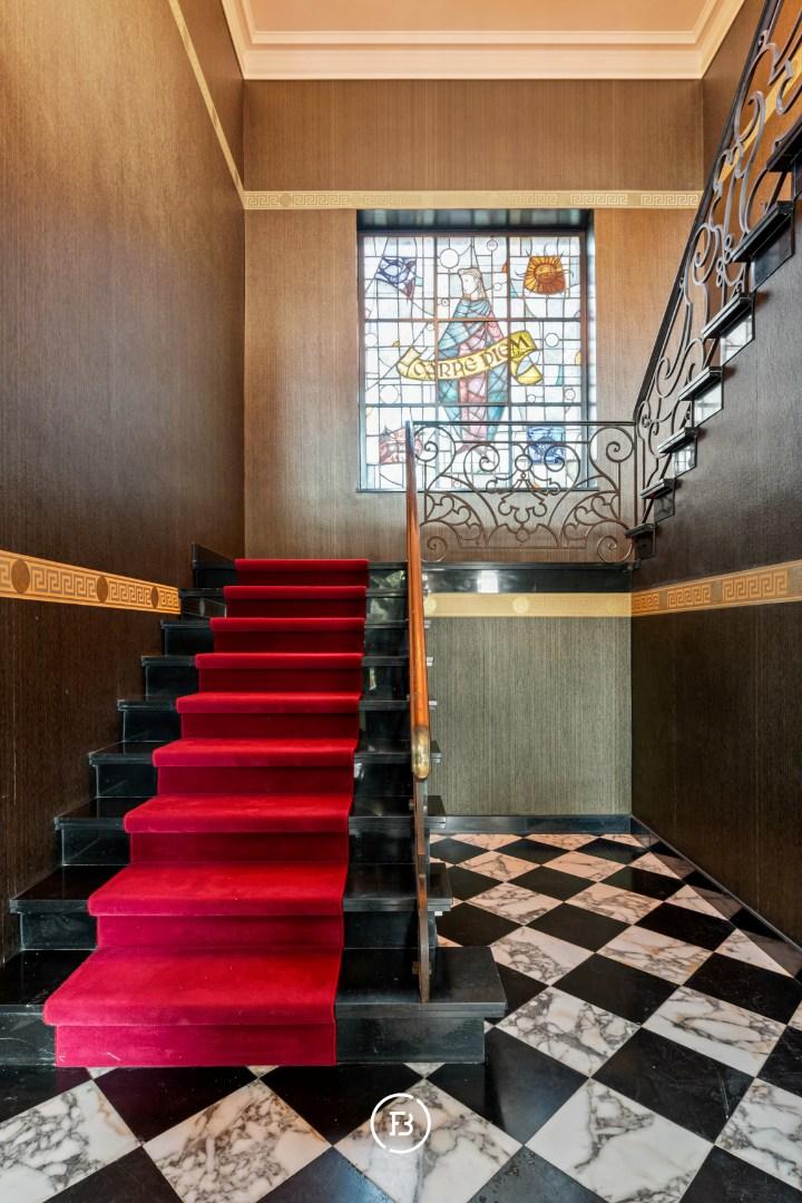 Une chambre spacieuse avec salle de bain au rez-de-chaussée offre une certaine prévoyance pour l'avenir. Les atouts supplémentaires incluent la nouvelle cuisine, construite avec de beaux matériaux, le beau parquet dans le salon, la taille des chambres et bien sûr, la vue sur le jardin. Des éléments authentiques tels que la vitre colorée, l'escalier en marbre et les ornements spécifiques de la façade extérieure donnent à l'ensemble une âme et du caractère.