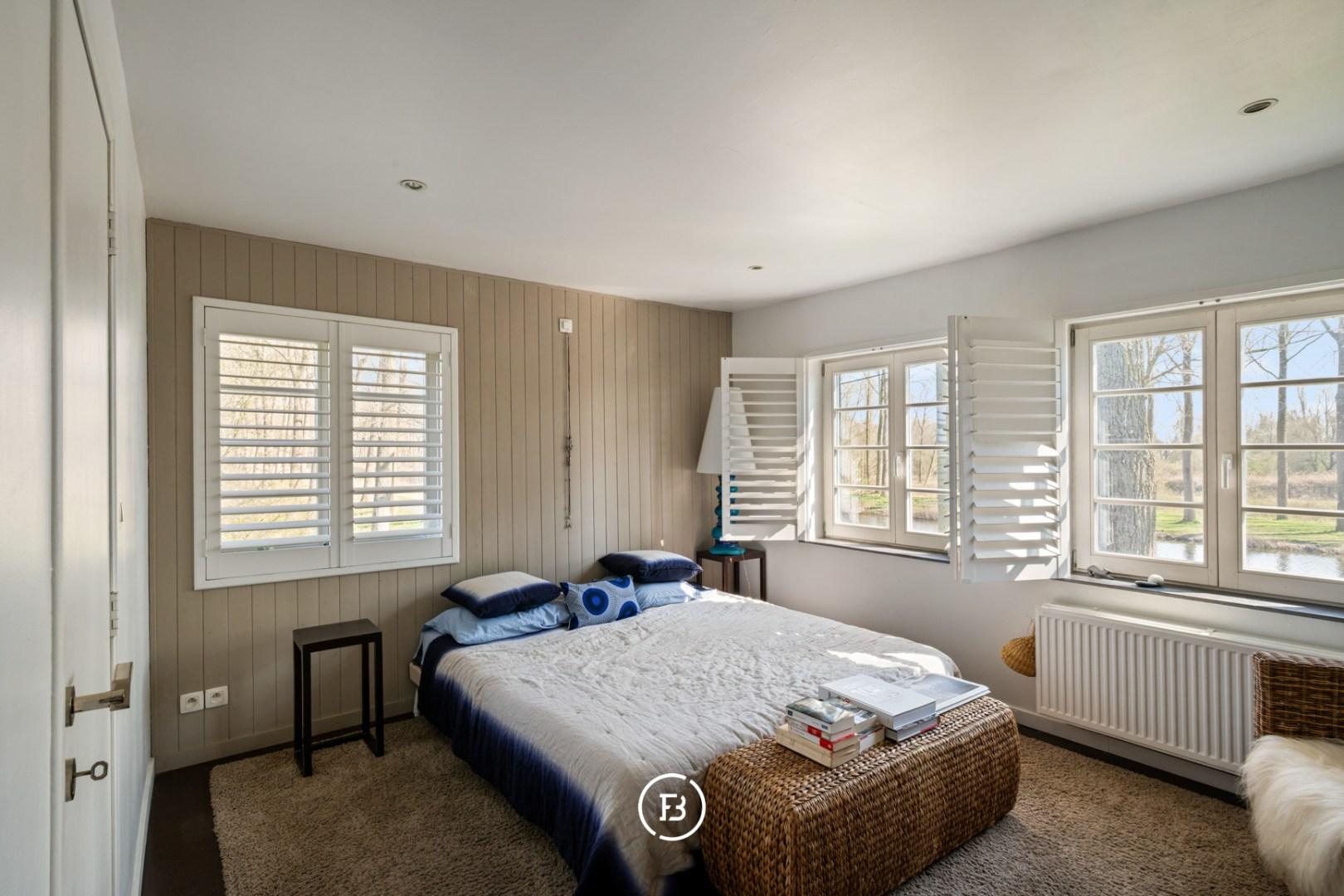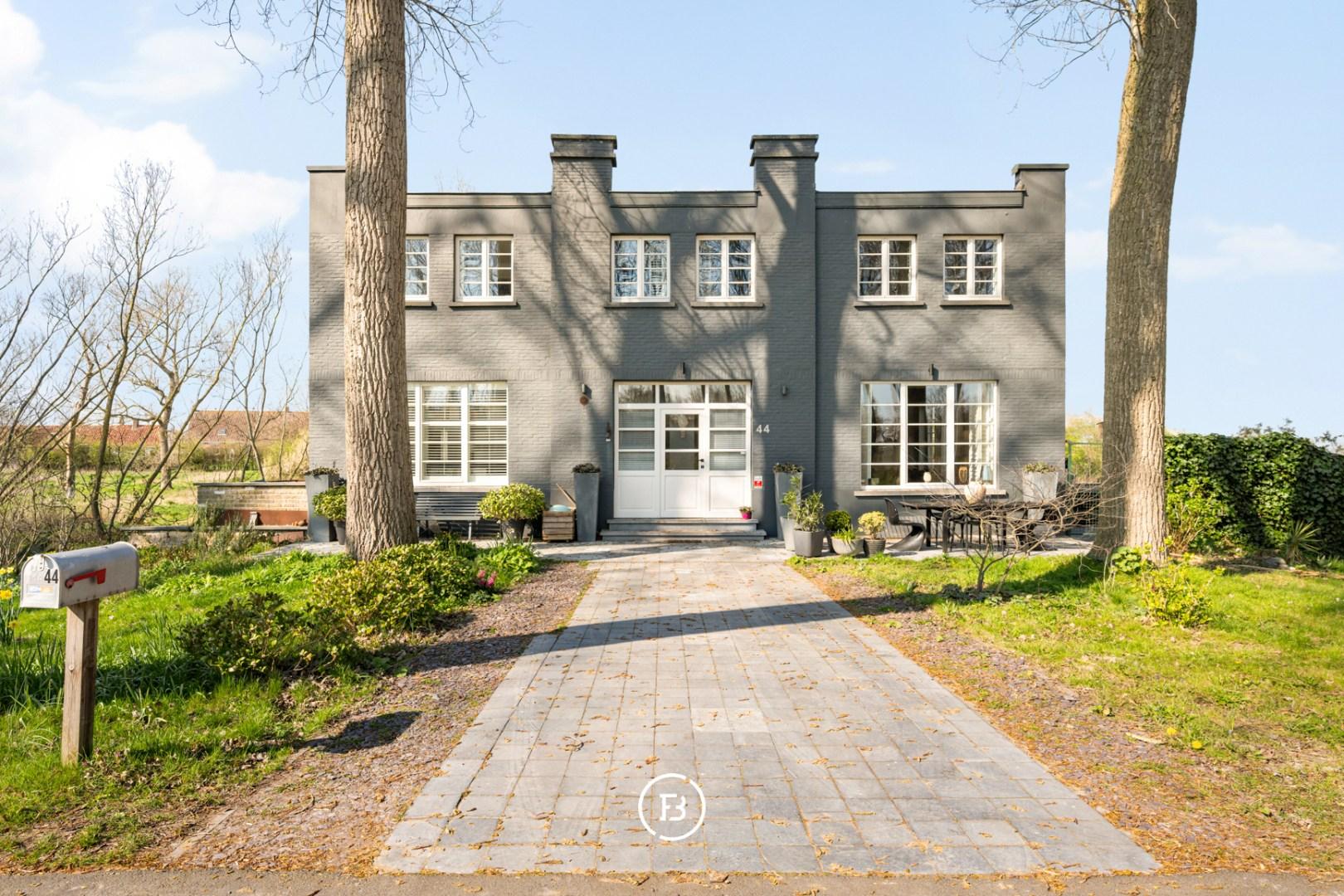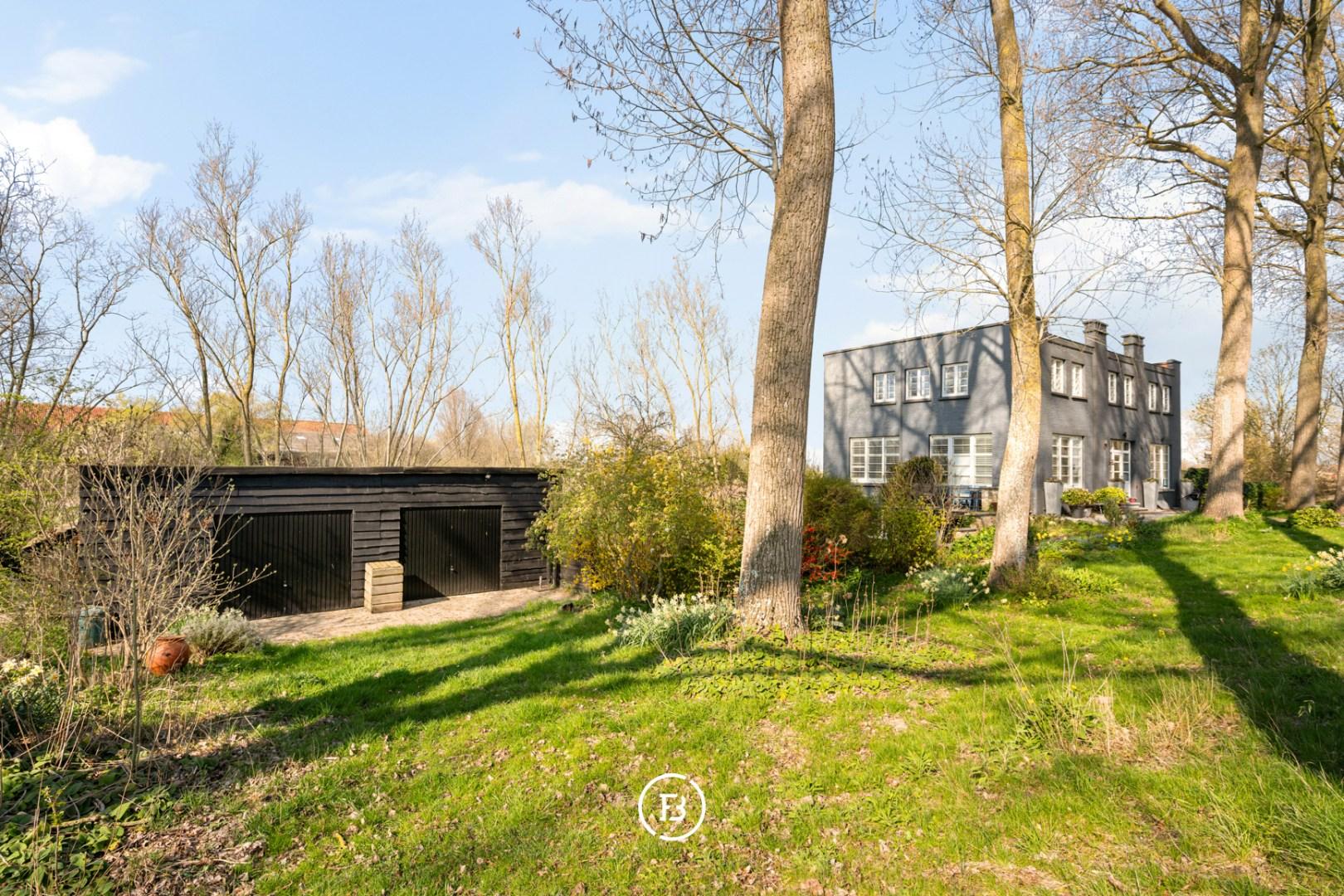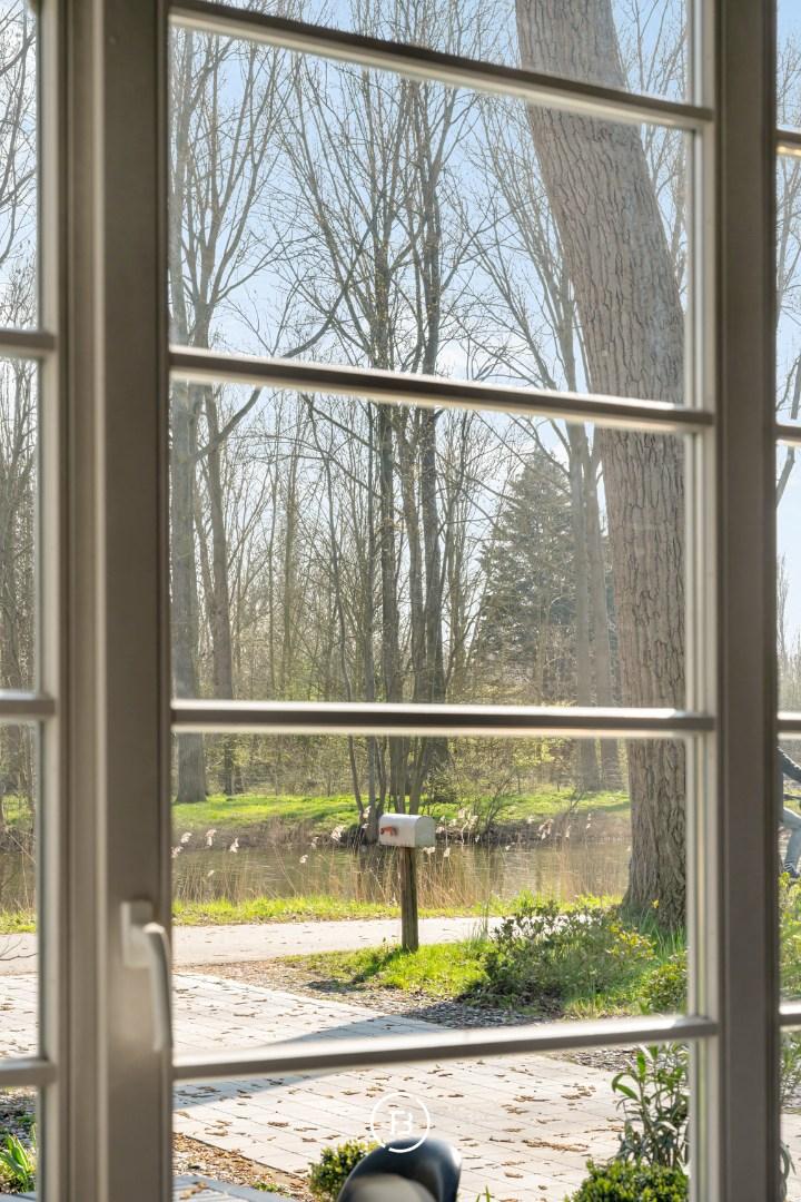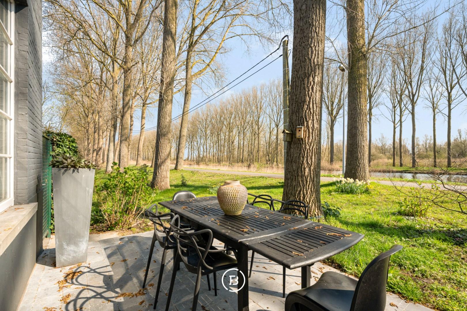 Au cœur des polders, le long du canal de Damme, se trouve cette propriété double de caractère. Ce monument classé est entièrement entouré de verdure et bénéficie d’un environnement calme et dégagé.