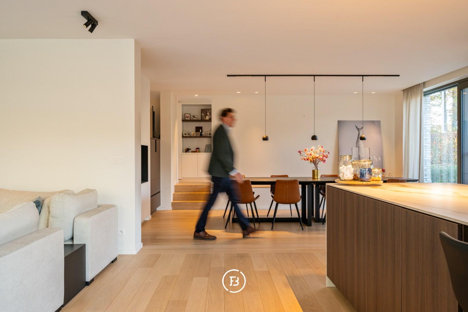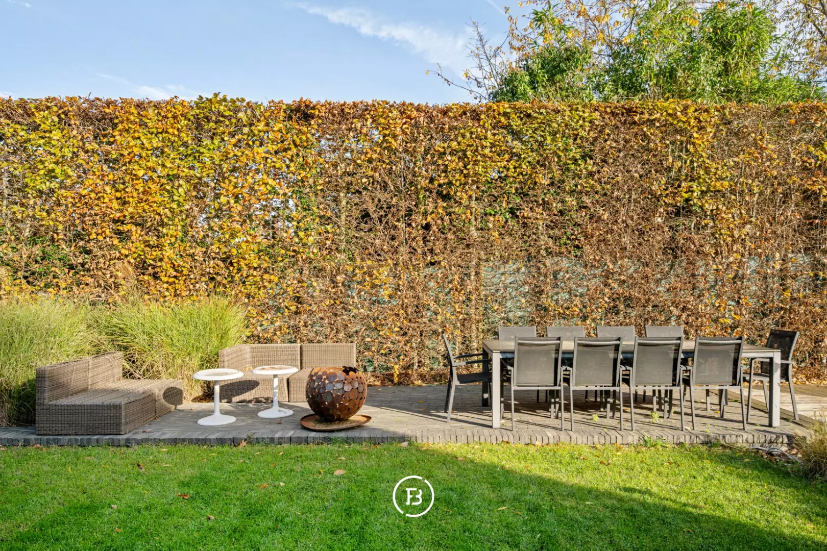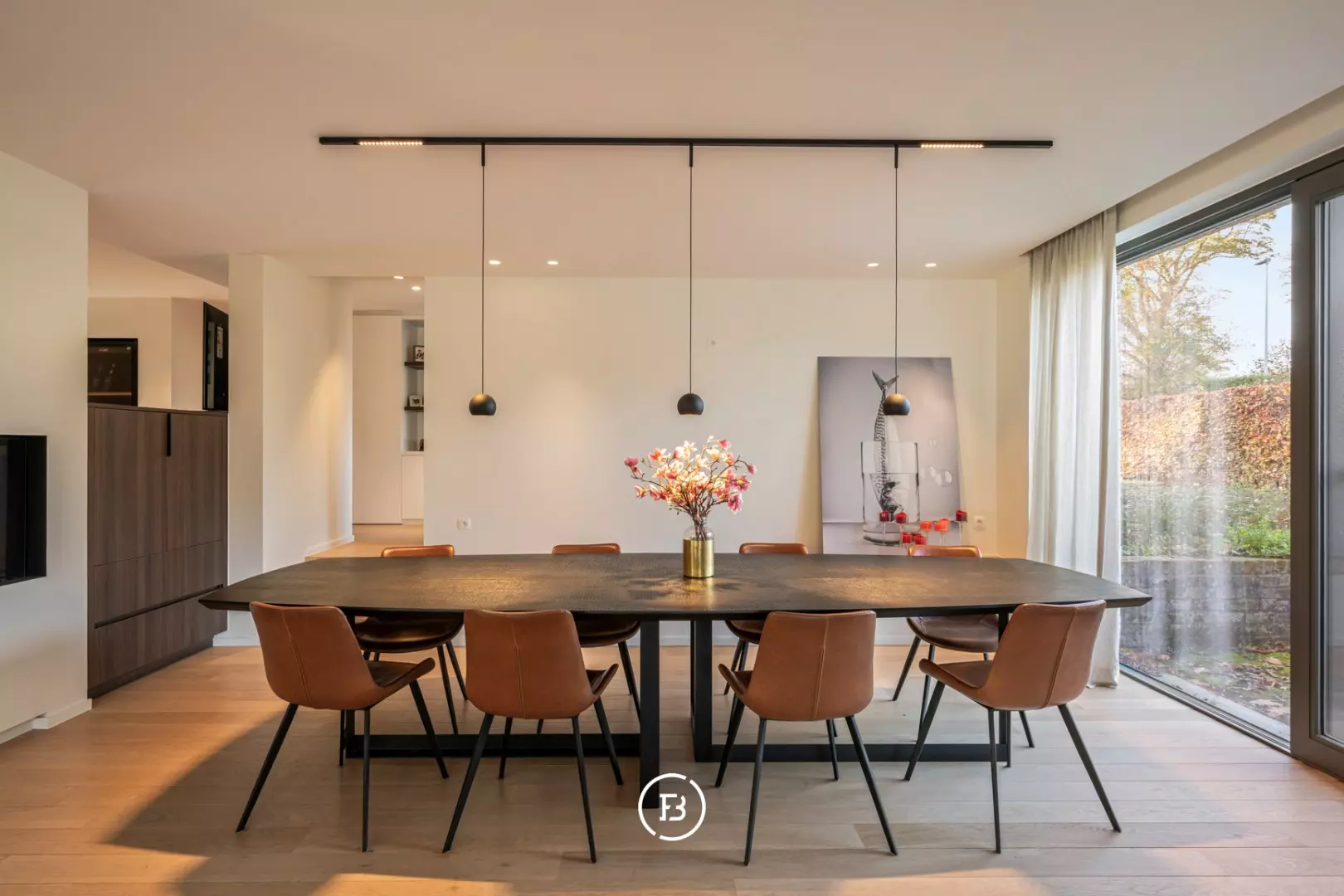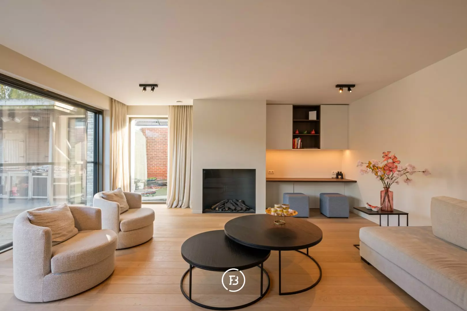 Cette villa moderniste située dans la zone Vogelzang, à côté de Tillegembos, a récemment été entièrement rénovée au rez-de-chaussée, avec du sur-mesure et des matériaux haut de gamme. Le premier étage n’a pas encore été rénové, offrant aux acquéreurs la possibilité de le moderniser selon leurs propres préférences. Le bien a été optimisé sur le plan énergétique et affiche désormais un excellent EPC A. La villa dispose également de deux grands garages et l’ancienne habitation bifamiliale a été transformée en une seule maison harmonieuse. Grâce à son agencement, le rez-de-chaussée convient parfaitement pour un cabinet ou bureau. Le premier étage se prête parfaitement à l’aménagement d’un cabinet ou bureau grâce à son agencement flexible et à l’environnement paisible. L’emplacement est très serein tout en offrant une accessibilité aisée pour une activité professionnelle à domicile.
