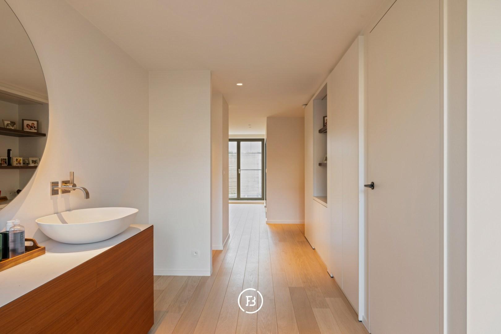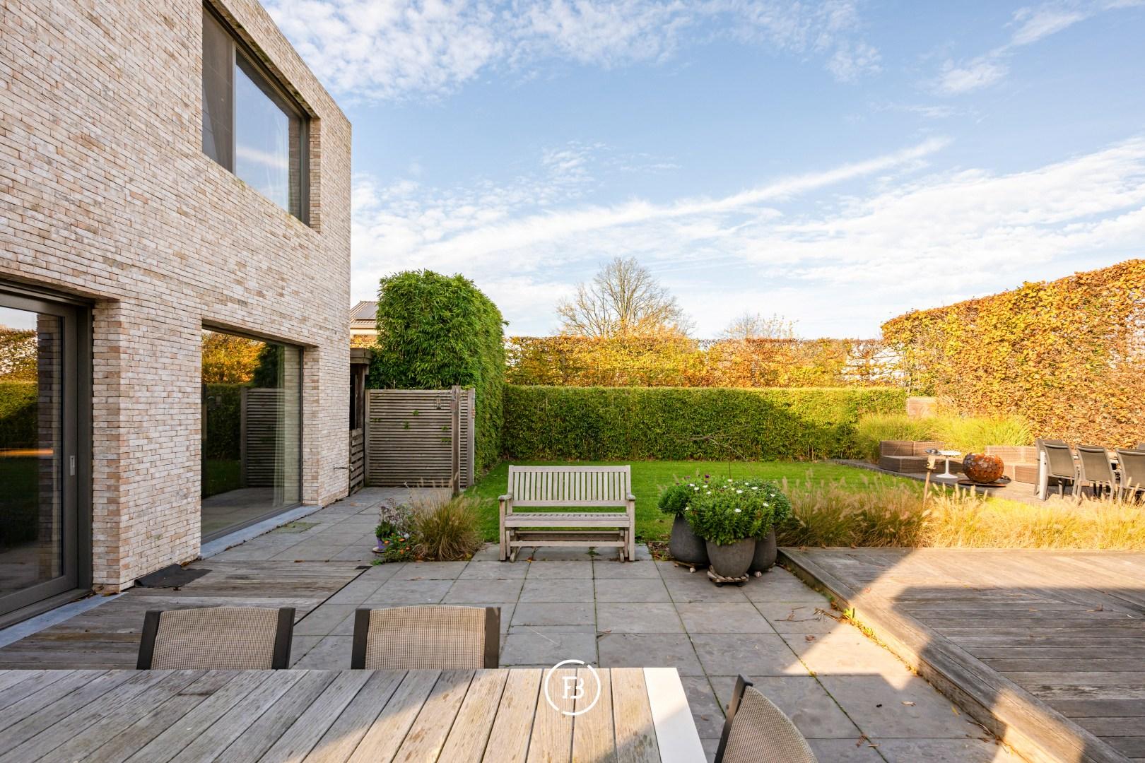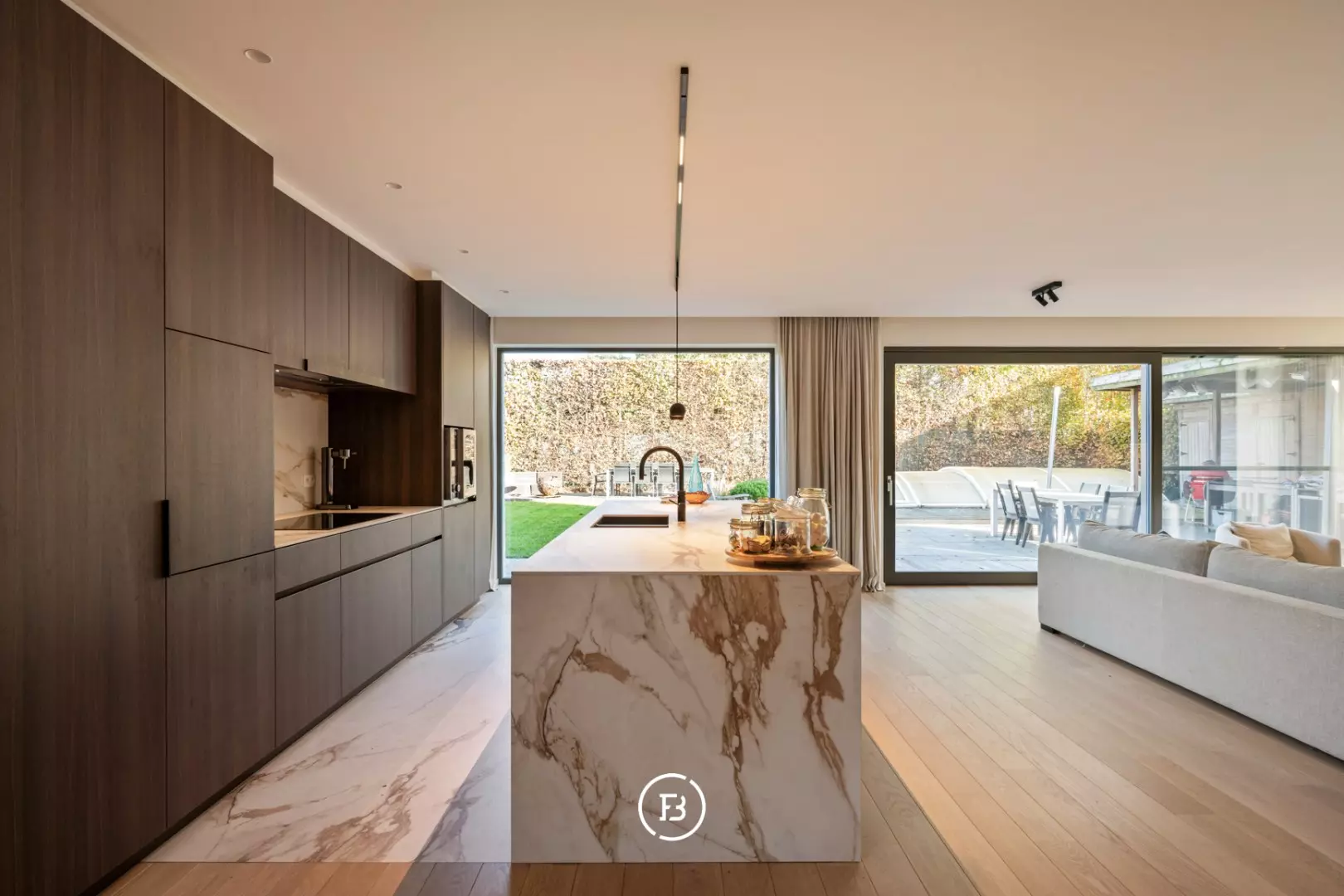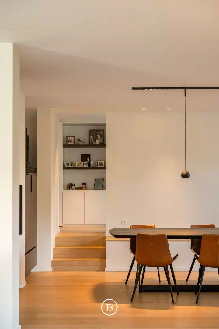 Cette villa moderniste située dans la zone Vogelzang, à côté de Tillegembos, a récemment été entièrement rénovée au rez-de-chaussée, avec du sur-mesure et des matériaux haut de gamme. Le premier étage n’a pas encore été rénové, offrant aux acquéreurs la possibilité de le moderniser selon leurs propres préférences. Le bien a été optimisé sur le plan énergétique et affiche désormais un excellent EPC A. La villa dispose également de deux grands garages et l’ancienne habitation bifamiliale a été transformée en une seule maison harmonieuse. Grâce à son agencement, le rez-de-chaussée convient parfaitement pour un cabinet ou bureau. Le premier étage se prête parfaitement à l’aménagement d’un cabinet ou bureau grâce à son agencement flexible et à l’environnement paisible. L’emplacement est très serein tout en offrant une accessibilité aisée pour une activité professionnelle à domicile.