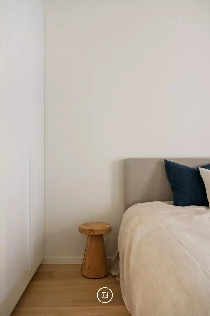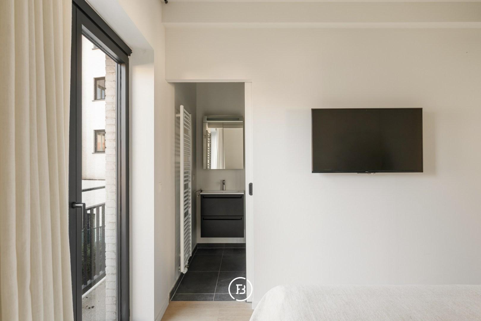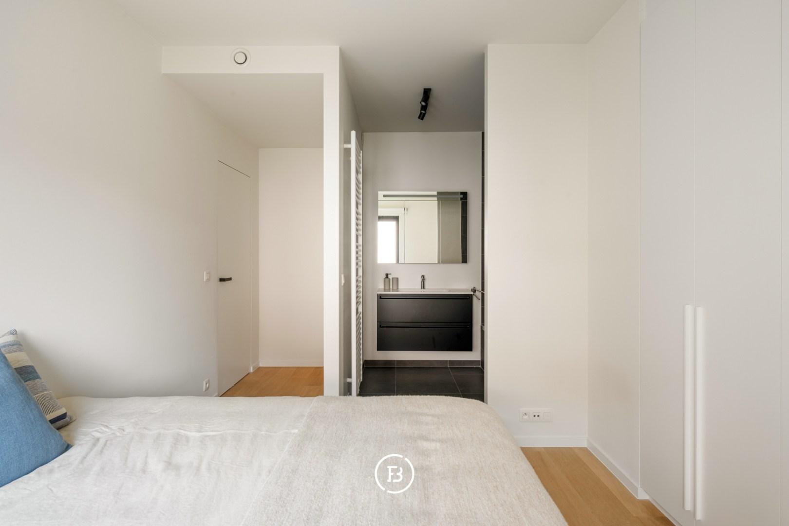 De masterbedroom beschikt over een eigen douchekamer en heeft rechtstreekse toegang tot het terras. De tweede slaapkamer heeft ook een eigen badkamer. Beide kamers zijn voorzien van ruime dressingskasten.