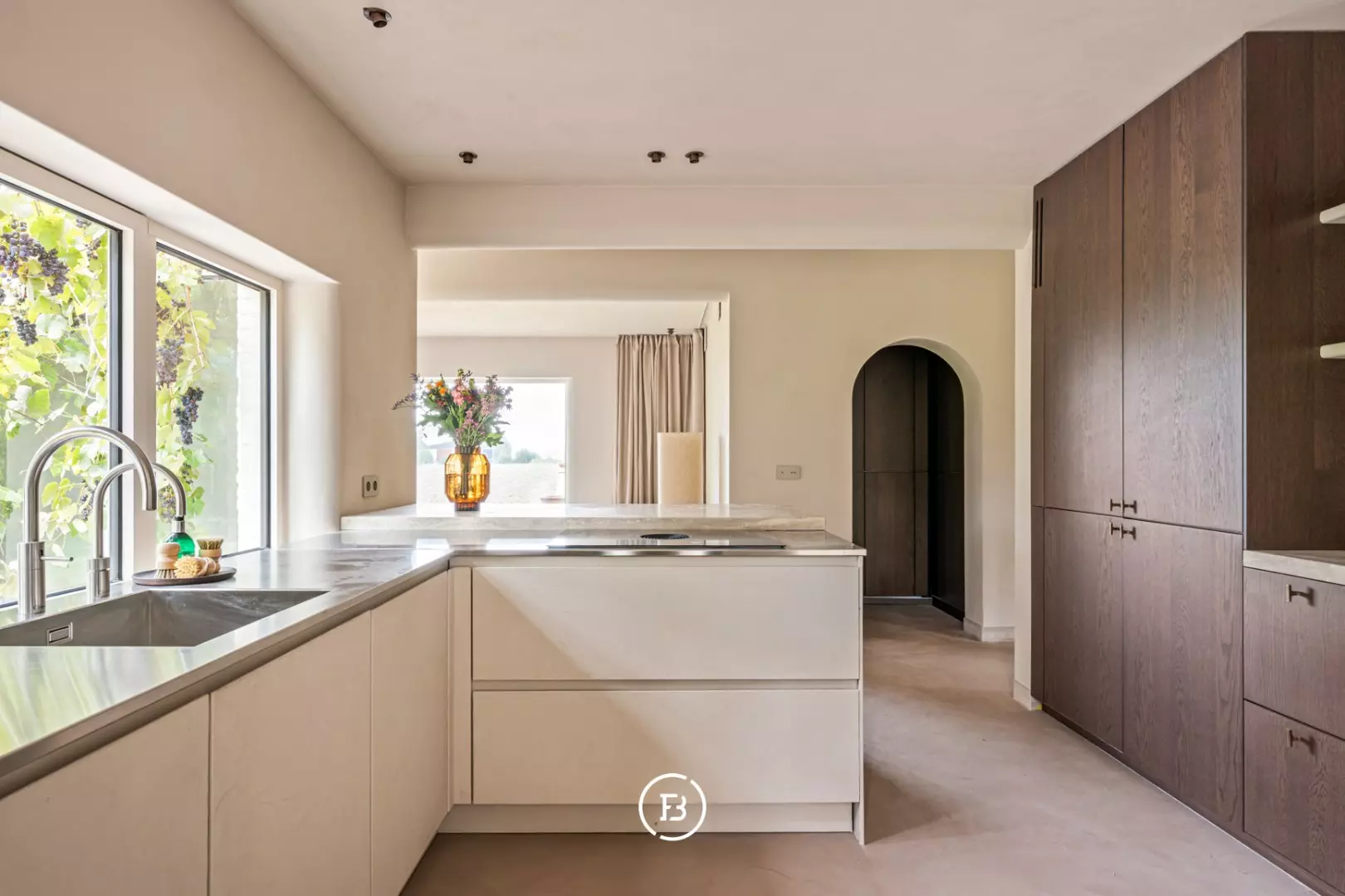 • De open leefkeuken is een absolute blikvanger, uitgerust met alle moderne toestellen en een koelcel.