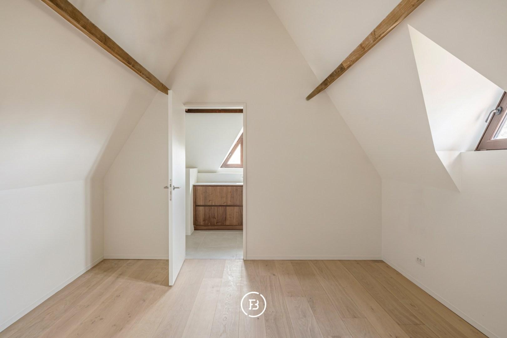 Op de eerste verdieping bevindt zich nog een ruime slaapkamer met badkamer, uitgerust met een ligbad, dubbele lavabo en toilet. Daarnaast is er een aparte berging in de gang.