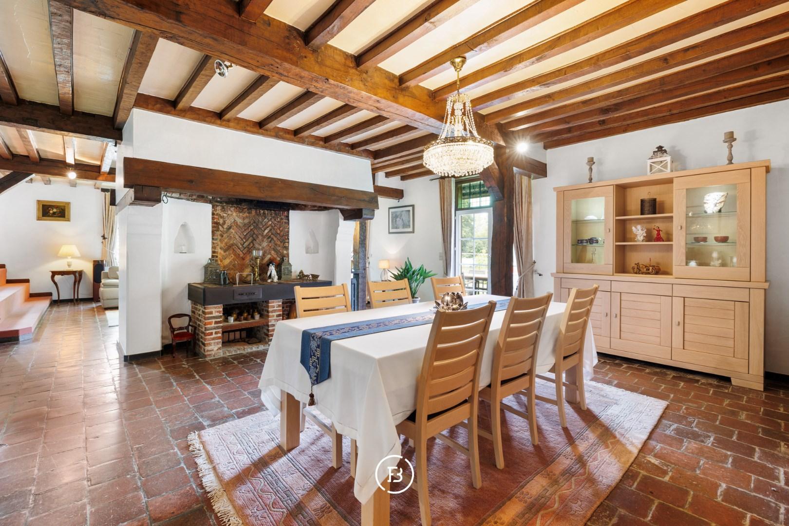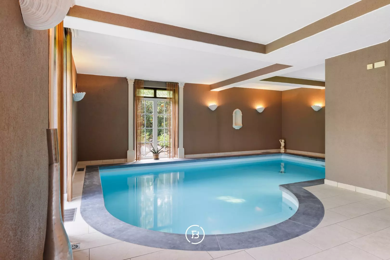 Deze gezinswoning is gelegen op een parkdomein van ruim 2.6 ha. De woning werd gebouwd in 1974 en werd uiterst goed onderhouden. Doorheen de jaren kreeg de villa reeds heel wat technische renovaties en updates. Huidige eigenaar creëerde een eigen oase met verwarmd binnenzwembad, waardoor het binnen telkens aanvoelt als een beetje vakantie. Omgeven door zijn prachtige natuur, heeft de woning vanuit elke ruimte een prachtig uitzicht. Huidige indeling als volgt: inkomhal met toegang tot het zwembad, ruime leefkeuken, open leefruimte met open haard, BBQ en toegang via grote vensters tot het terras, aparte kelder en aparte bureauruimte. De verdieping bestaat uit een ruime masterbedroom met inloopdressing en badkamer. Verder zijn nog twee slaapkamers en een tweede aparte badkamer. Buiten heeft de woning nog een ruime dubbele garage met alsnog veel bergruimte. Op de verdieping van de garage werd een grote hobbykamer gemaakt die kan dienst doen voor alle doeleinden. Een zeer charmante woning, gelegen op een prachtig domein met een uiterst vlotte verbinding en op slechts enkele minuten wandelen van het Centrum van Genk.