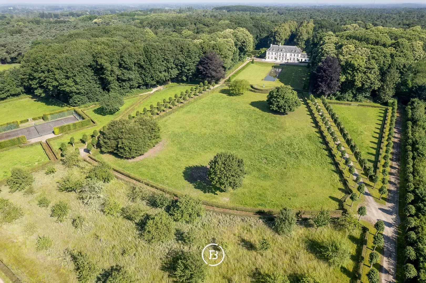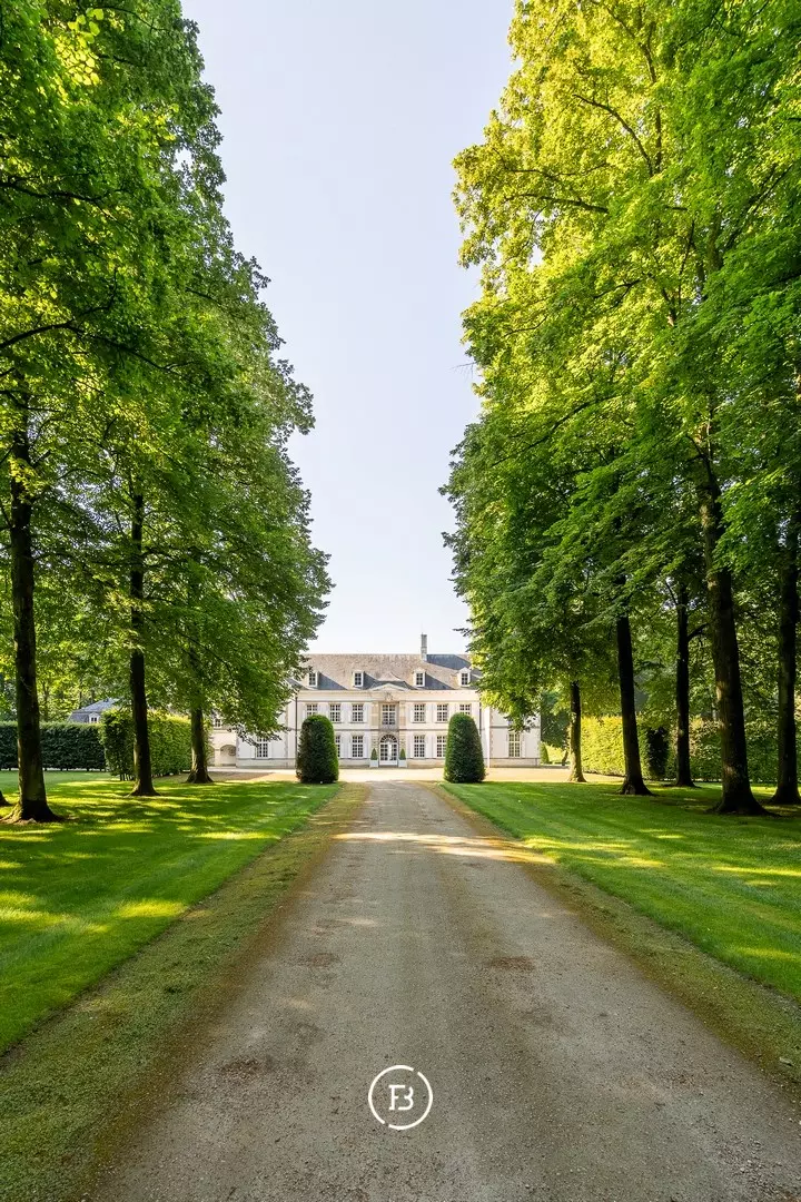 Het interieur met signatuur Axel Vervoordt staat garant voor authentieke en warme materialen (historische boiseries en houten vloeren) in gezellige leefruimtes. Een lange en brede oprijlaan, geflankeerd door kegelvormig geschoren taxussen verzekert een majestueuze en stijlvolle inkom. Aan de straatkant is het domein afgesloten door een rechte taxushaag met opvallende rechthoekige inrijpoort gevormd door bijzonder sierlijk uitgewerkt smeedijzeren hekwerk.