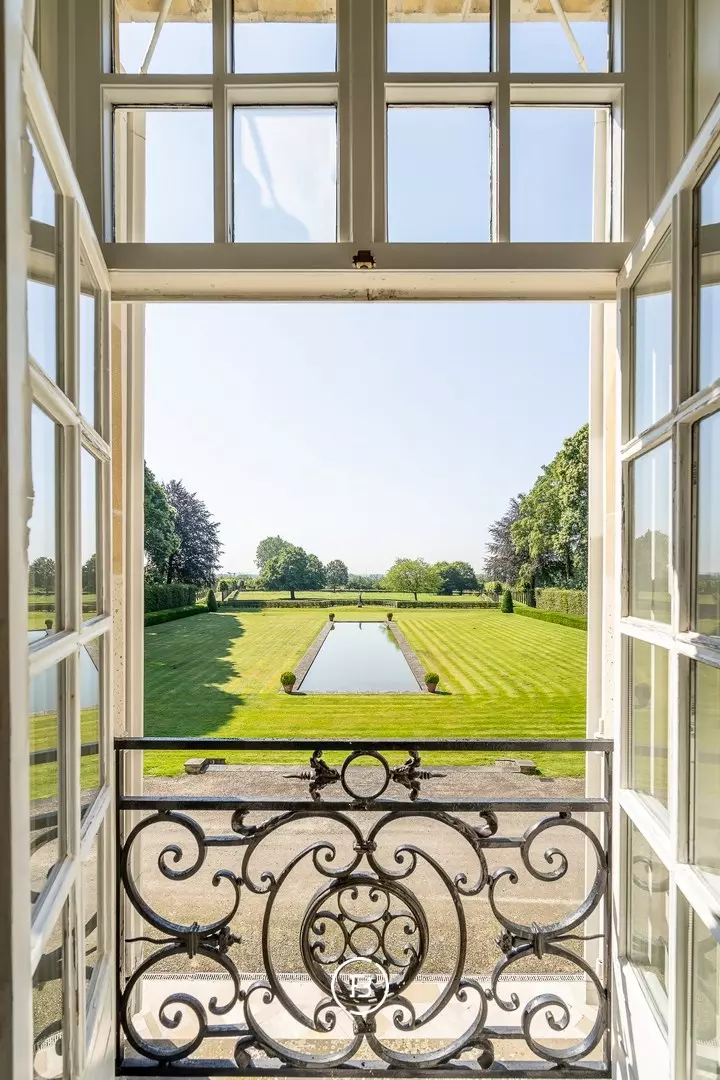 Het kasteel is mooi centraal ingeplant op een uitgestrekt en deels bebost domein van maar liefst 17 ha. Het is omgeven door een schilderachtig kasteelpark en tuinen ontworpen door tuinarchitect Jacques Wirtz.
