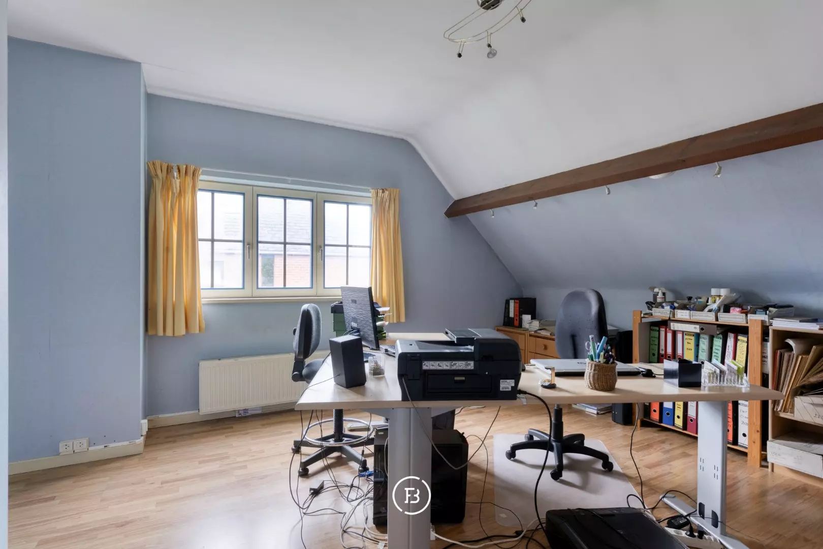 Via de ruime inkomhal met vestiaire en gastentoilet betreed je de woning. De lichtrijke leefruimte vormt het hart van het huis en geniet van een open zicht op de tuin. Aansluitend bevindt zich de ingerichte keuken en een aparte bureauruimte, die desgewenst kan worden geïntegreerd in de leefruimte voor een nog ruimer en open geheel.