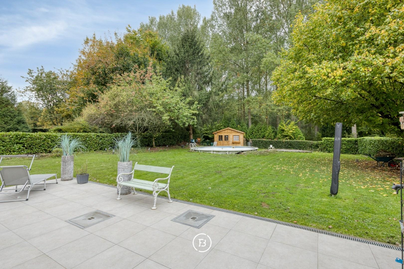 De woning is gelegen in alle rust, aangrenzend aan een bos. Verder beschikt de woning over een inpandige garage, oprit, aangenaam zuid-westen terras en zwembad in de tuin.