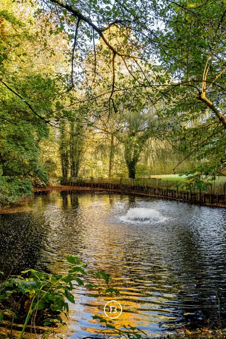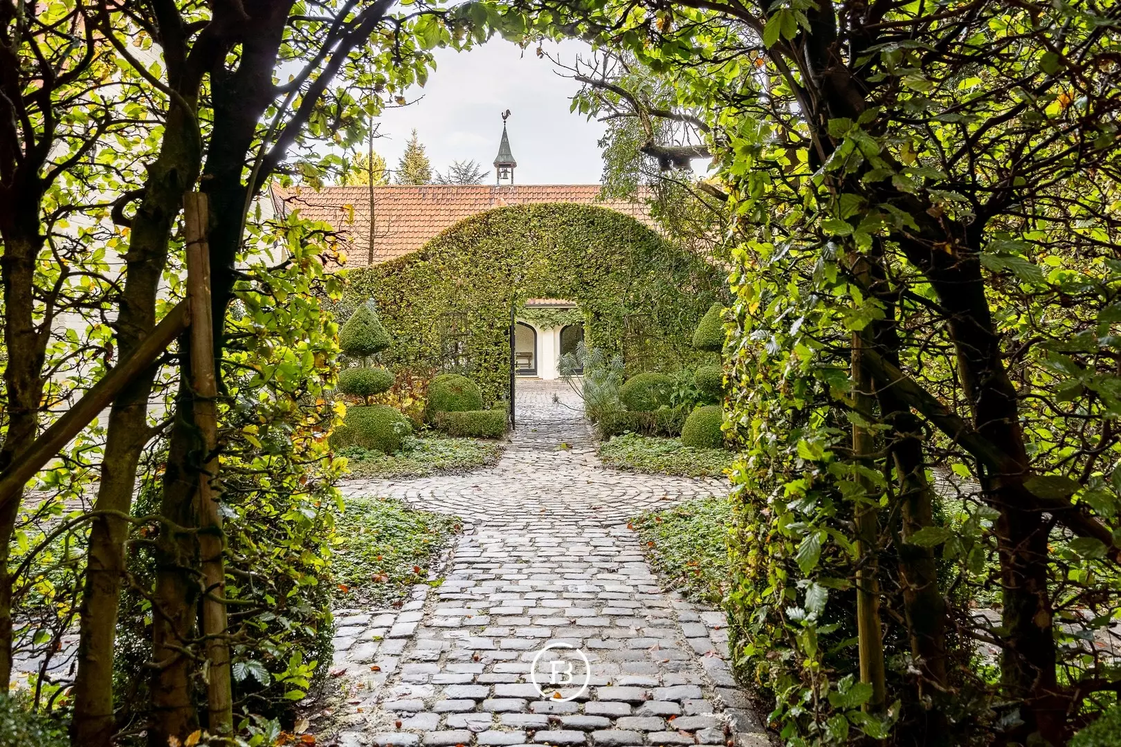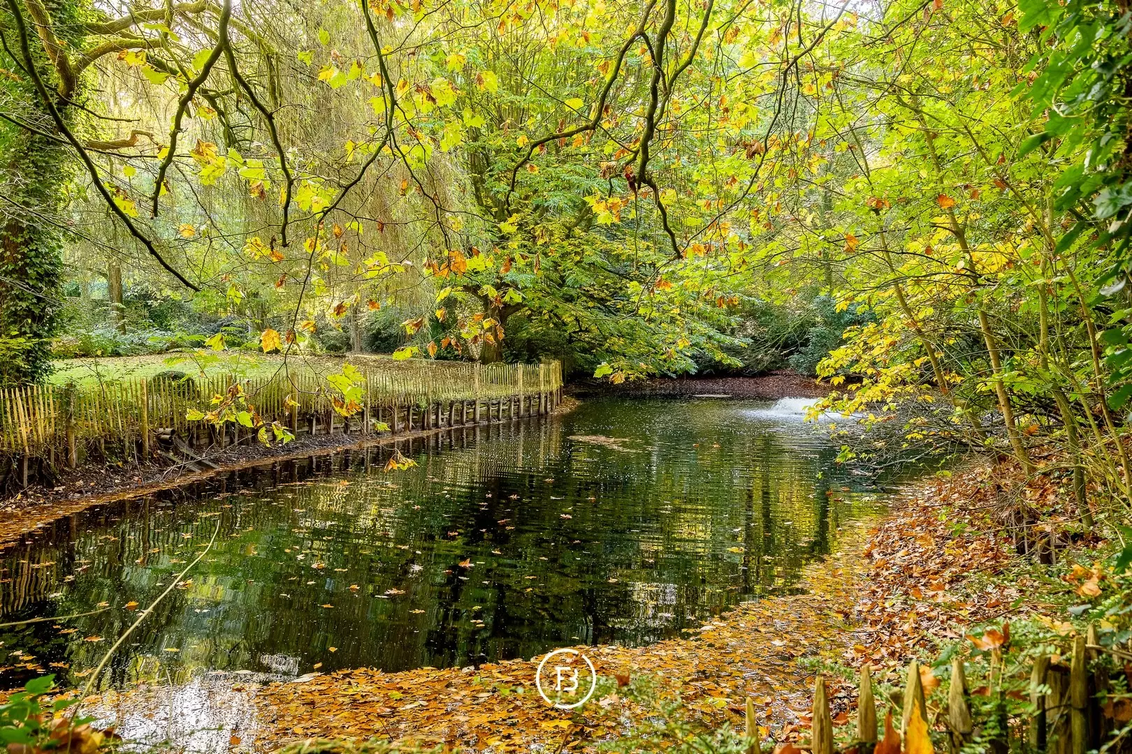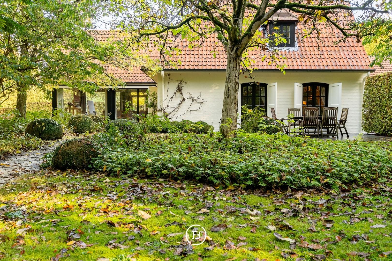 De tuin is een oase van rust, met verschillende sferen en doordachte accenten: een Engelse vlindertuin, een charmante boomgaard en kronkelende paadjes door het omringende bos. Subtiele tuinverlichting en ingebouwde luidsprekers creëren een unieke, betoverende sfeer – zowel overdag als bij valavond.