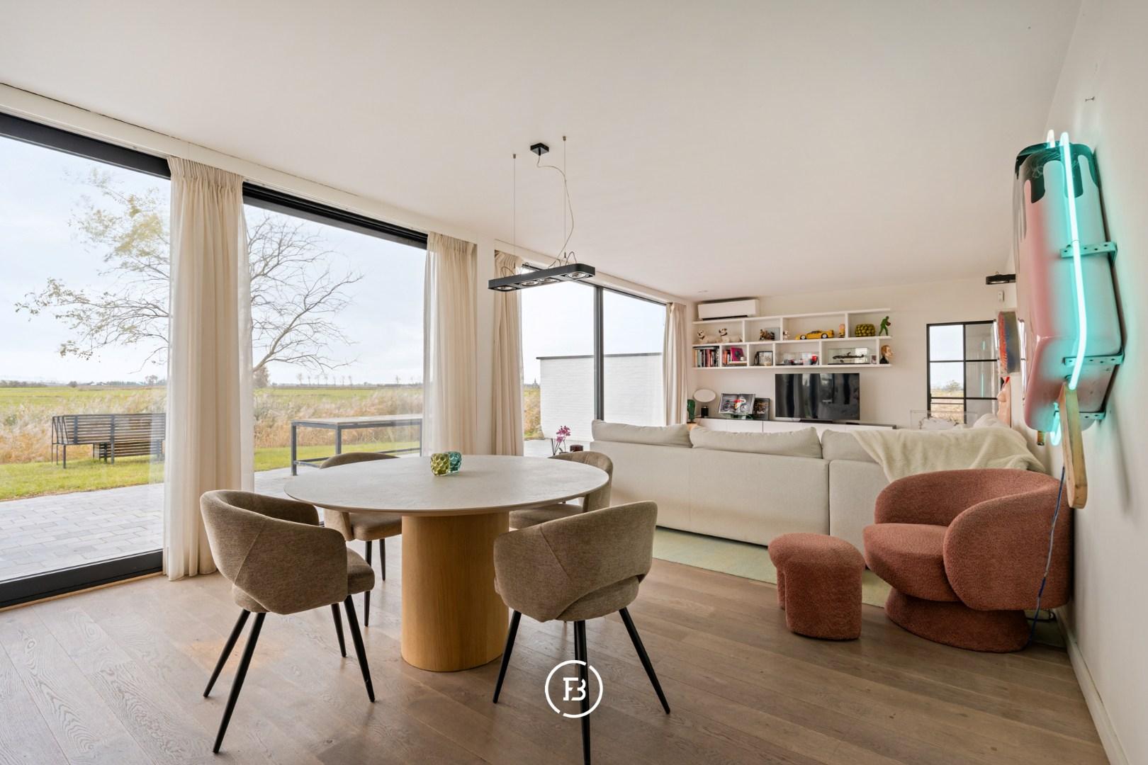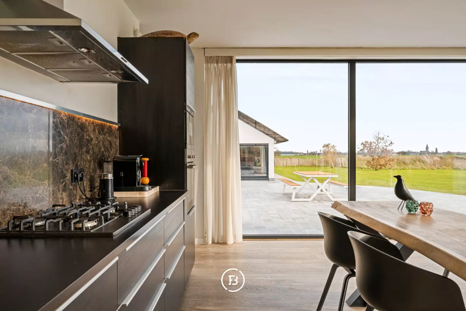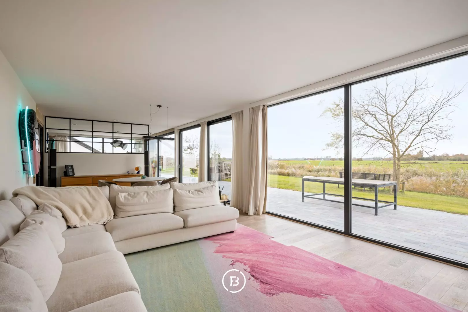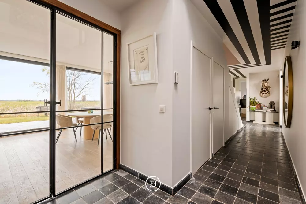 Met een bewoonbare oppervlakte van 309 m2 biedt de woning een aangename ruimtelijkheid, gecombineerd met een rustige en tijdloze afwerking die meteen een gevoel van thuiskomen oproept. Grote ramen laten het omliggend landschap overal binnenkomen, waardoor de open zichten voortdurend aanwezig zijn in het dagelijkse woonleven.