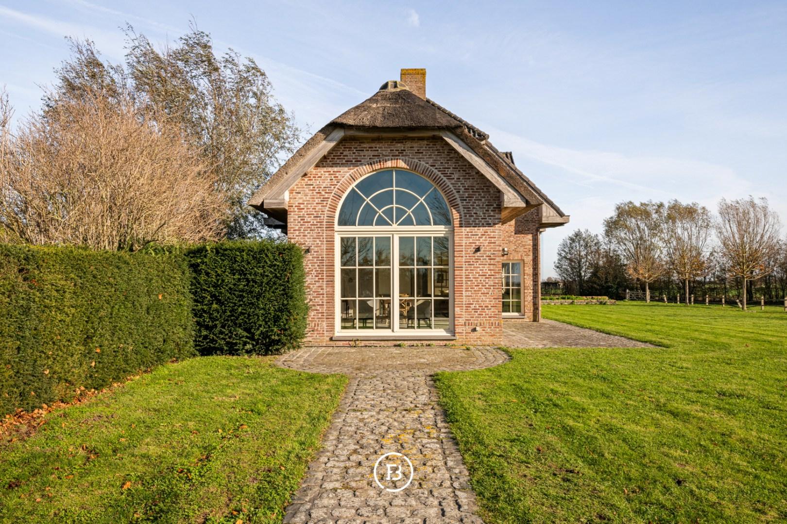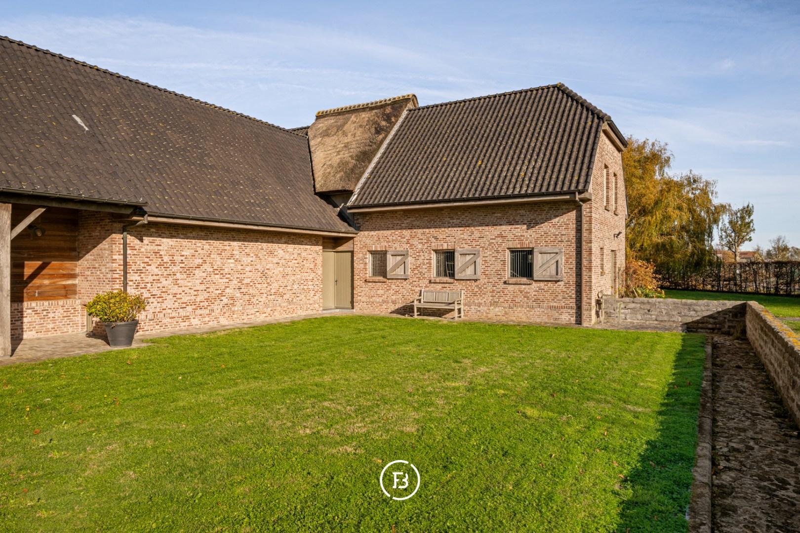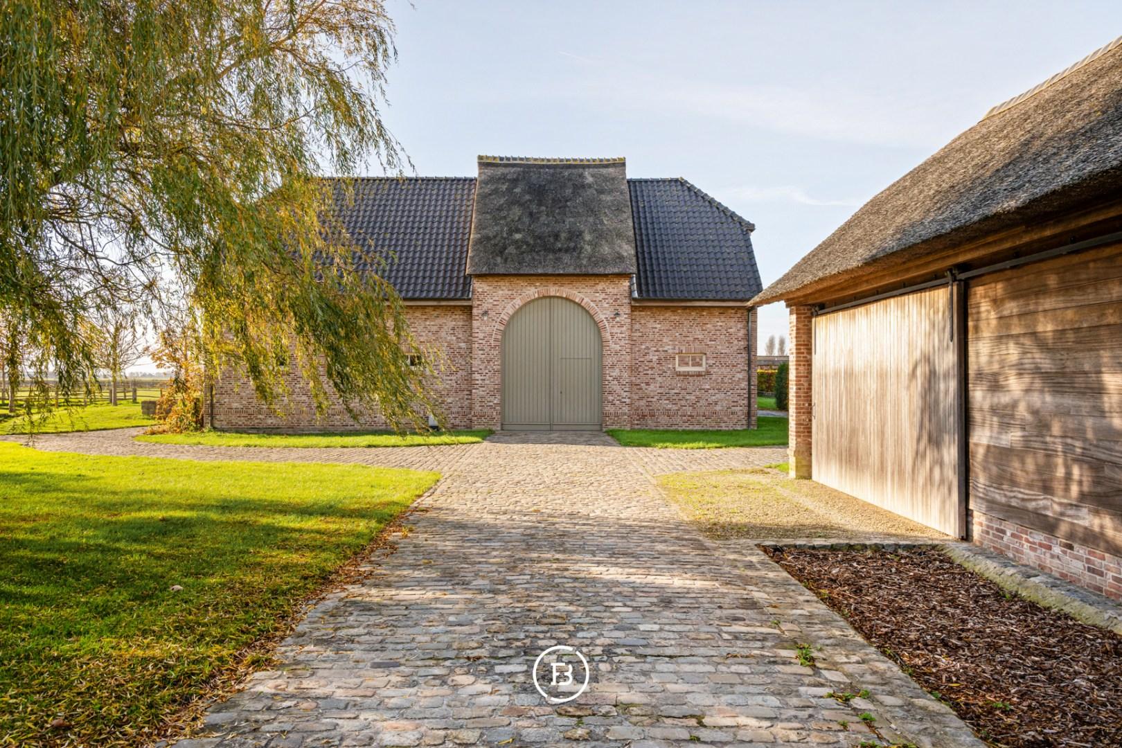 Verder beschikt het domein ook over een groot bijgebouw (2017) van 94 m² dat vandaag dienst doet als garage voor 4 wagens. Daarnaast zijn er ook 3 paardenboxen en een aangelegde paardenpiste.