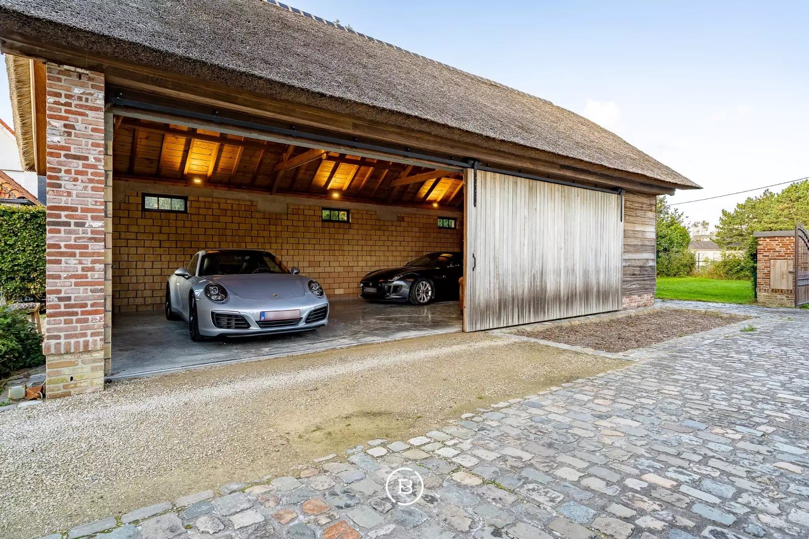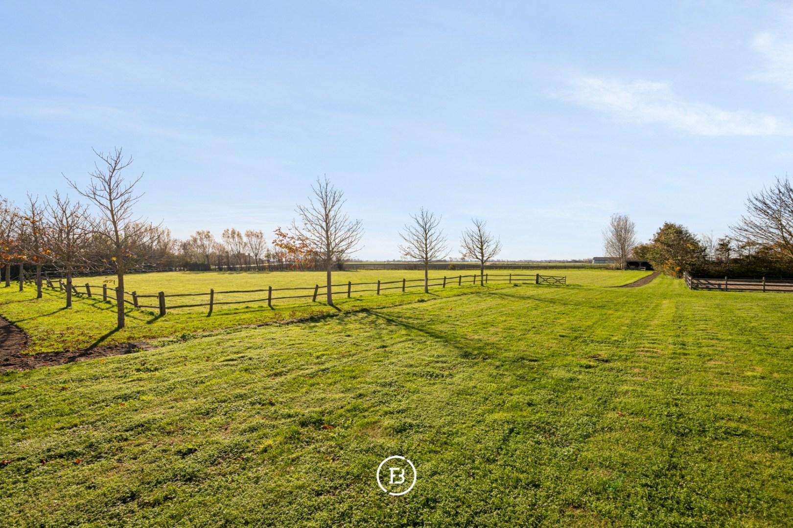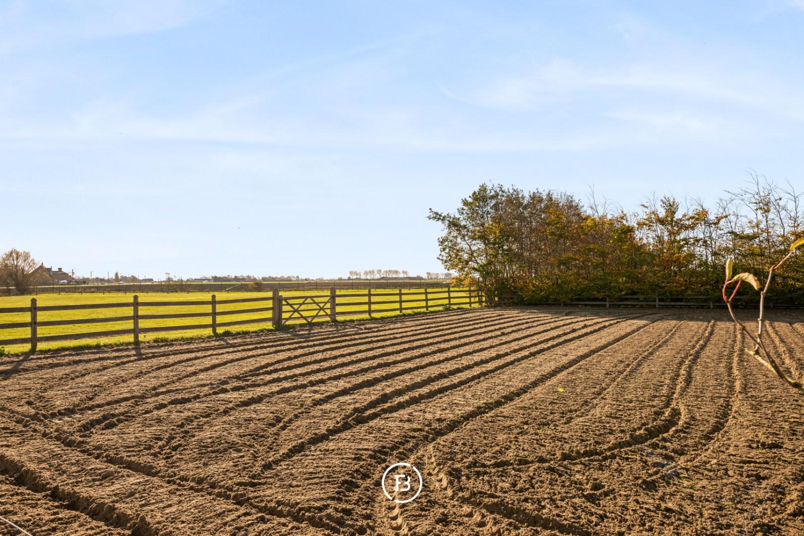 Verder beschikt het domein ook over een groot bijgebouw (2017) van 94 m² dat vandaag dienst doet als garage voor 4 wagens. Daarnaast zijn er ook 3 paardenboxen en een aangelegde paardenpiste.
