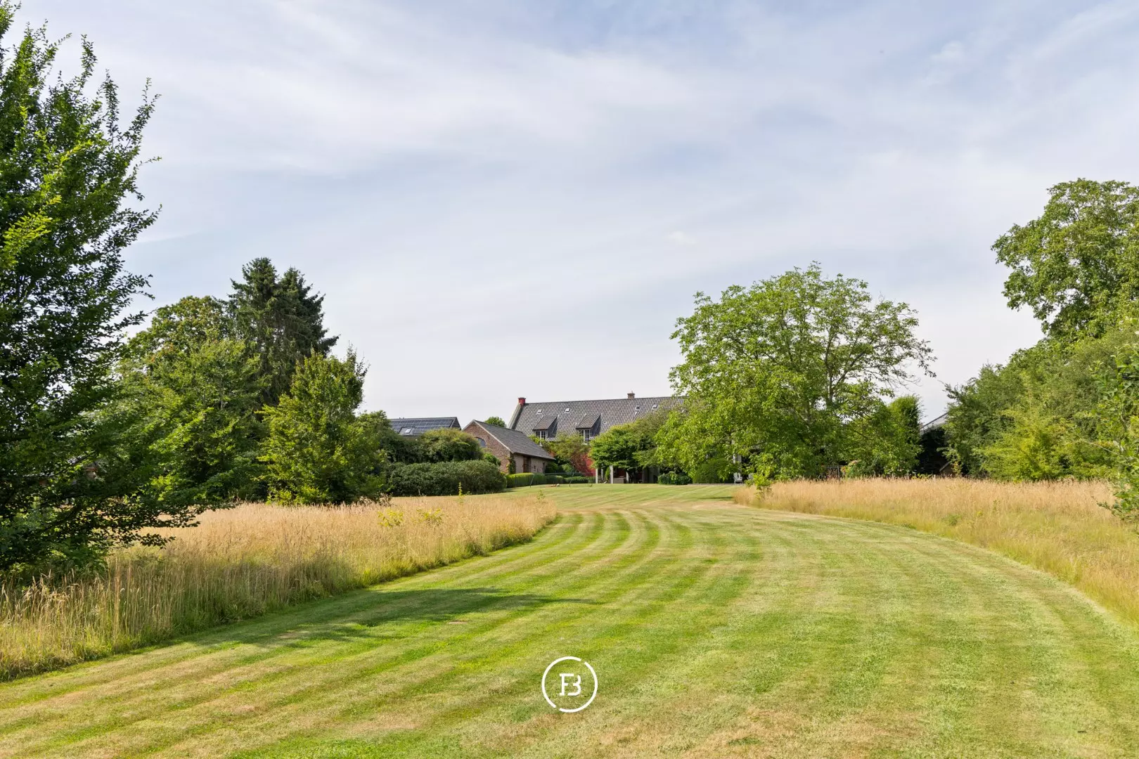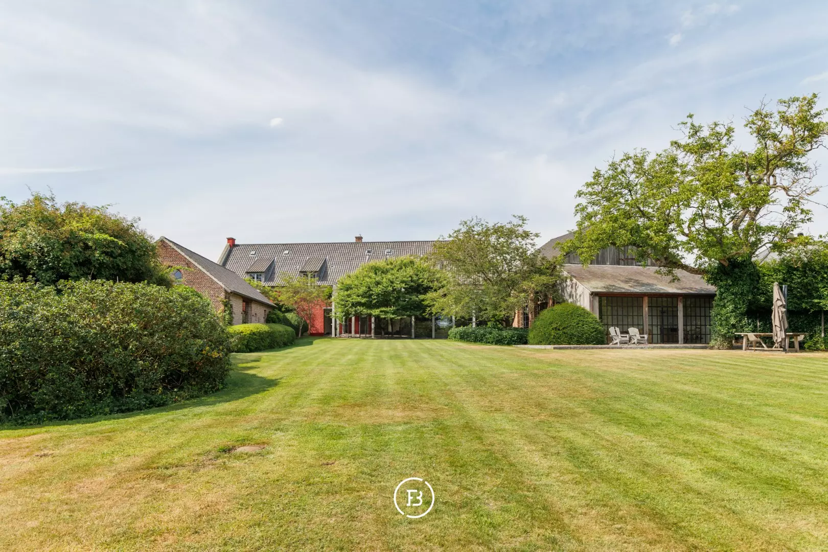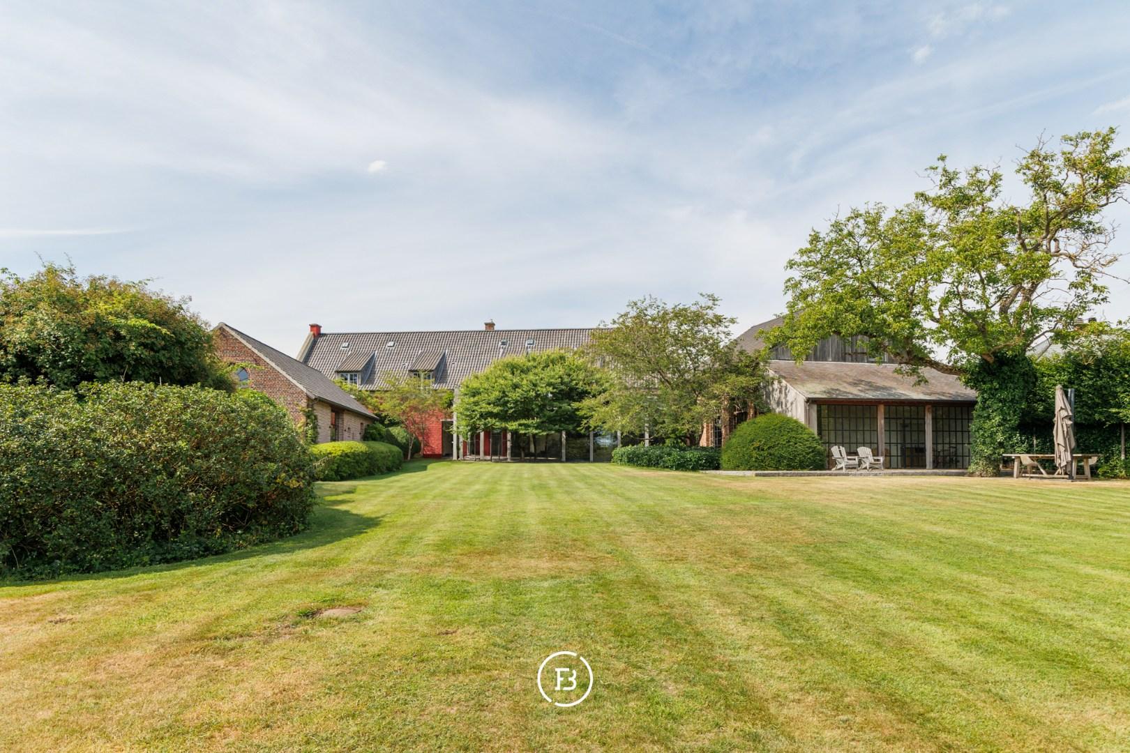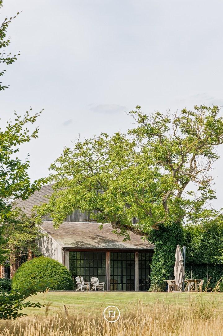 Weids uitzicht over de eigen parktuin van bijna anderhalve hectare met volwassen bomen, een boomhut en een discreet achterliggend uitweggetje.