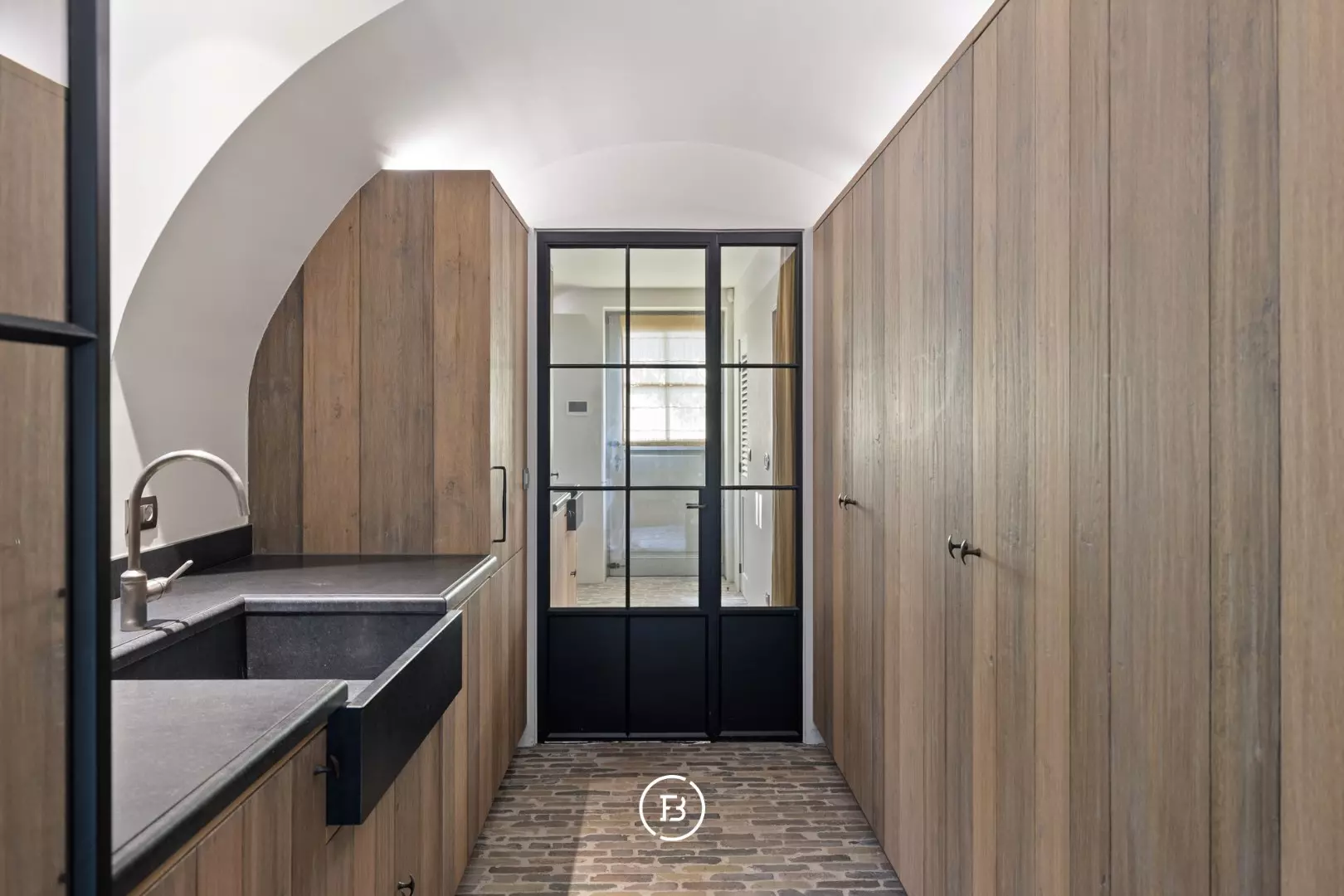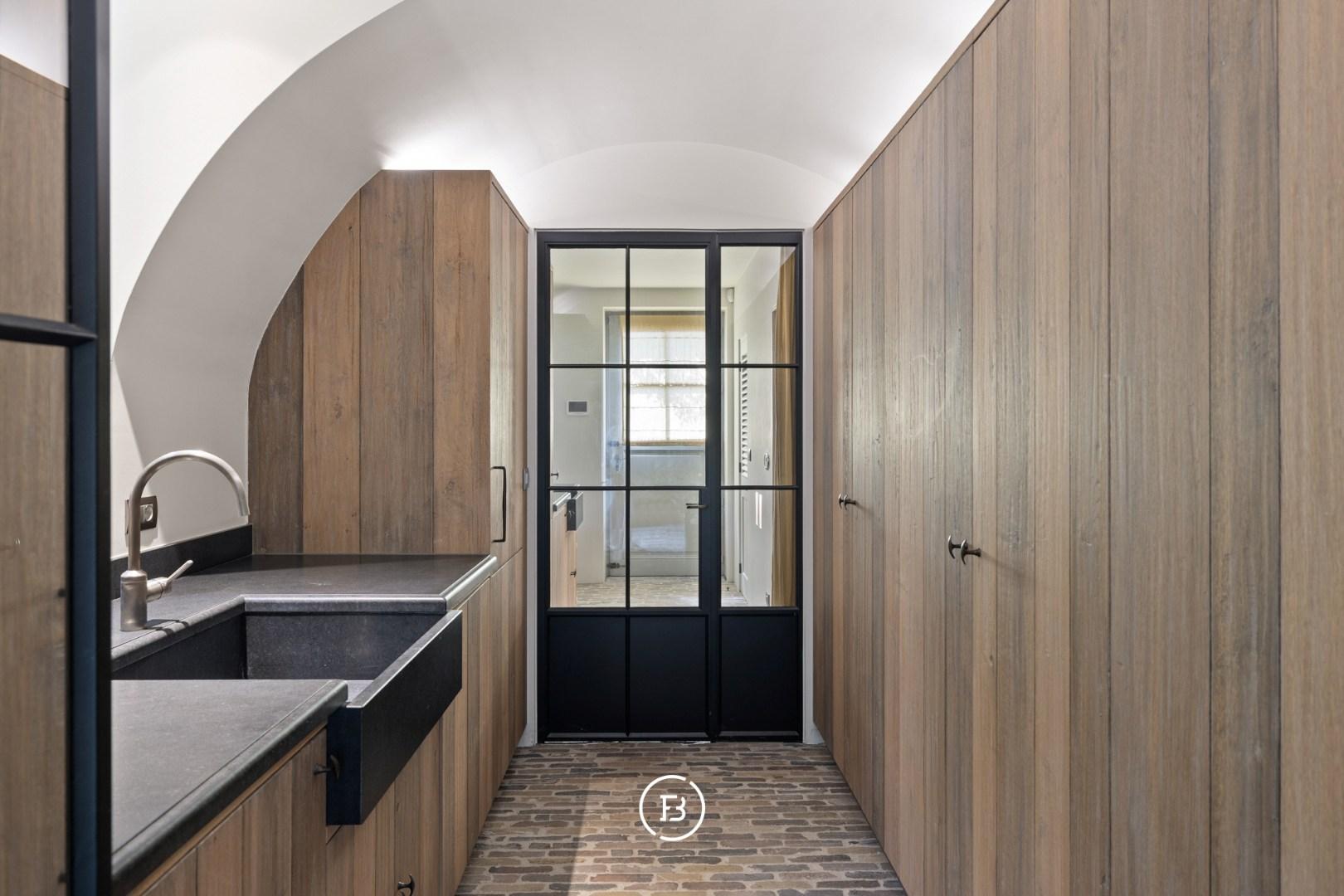 Natuurlijke materialen voeren de boventoon: zorgvuldig geselecteerde natuursteen, fijne houtsoorten en discrete stalen accenten zorgen voor een tijdloze esthetiek.