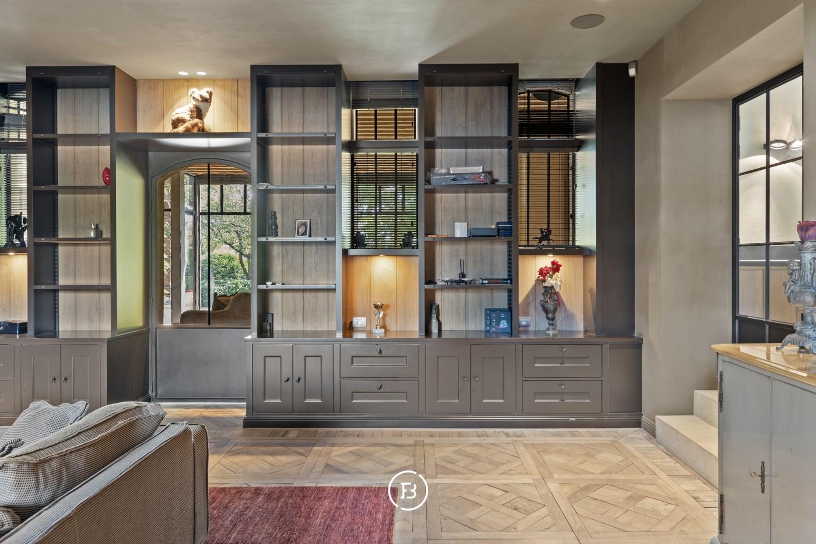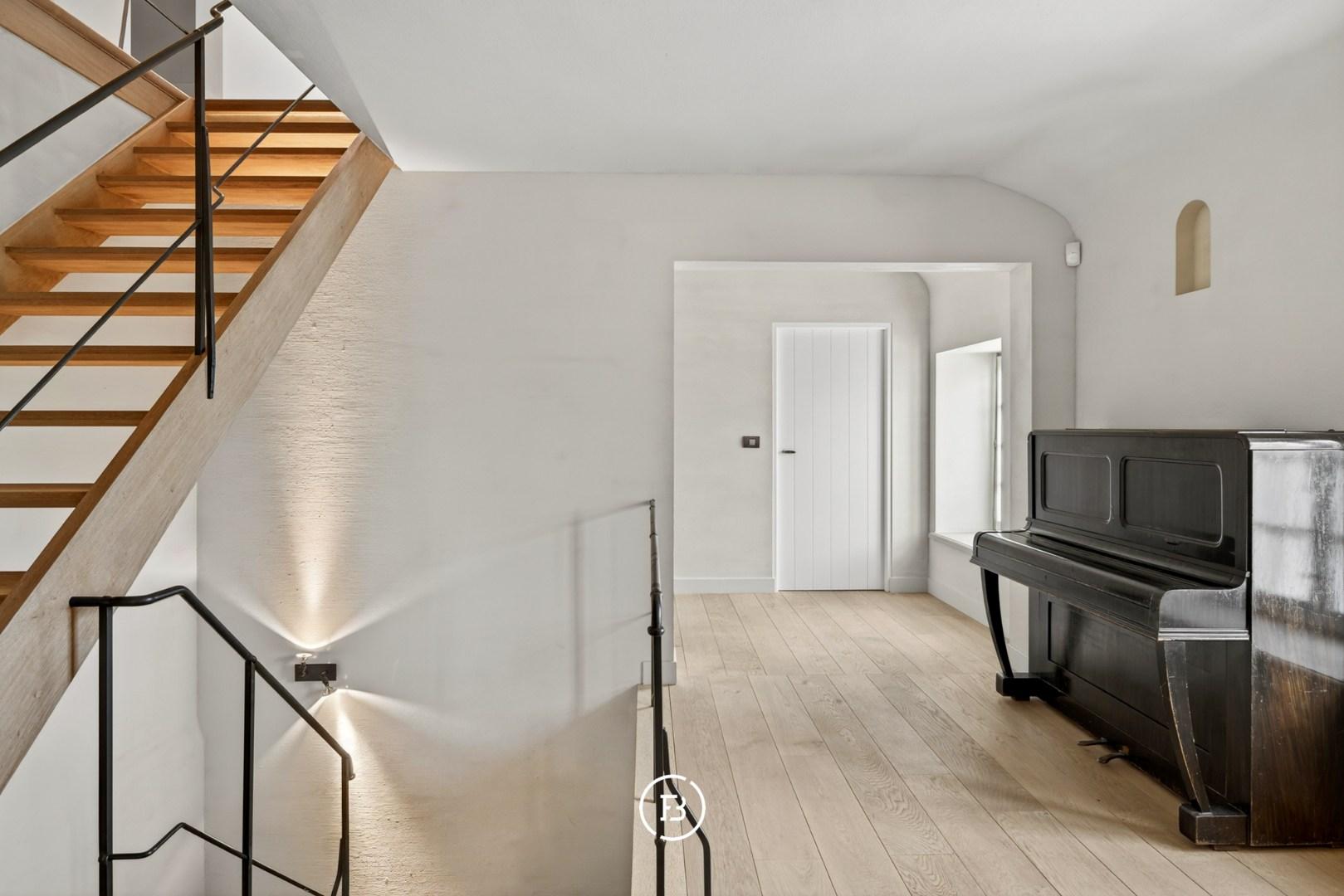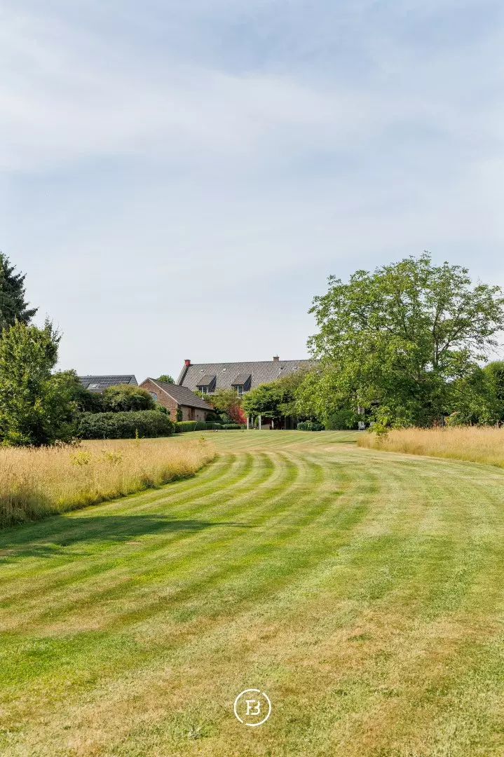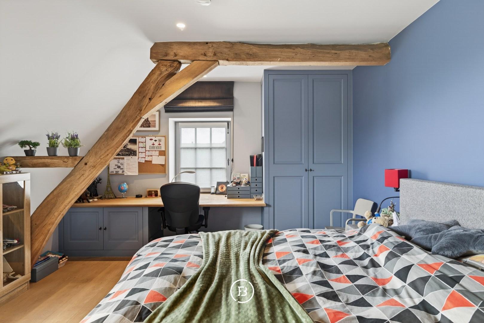 Vijf ruime slaapkamers en drie badkamers bieden comfort op maat van een gezin of gasten, terwijl een afzonderlijk bureel van 80 m² met eigen ingang ideaal is voor wie wonen en werken elegant wil scheiden.