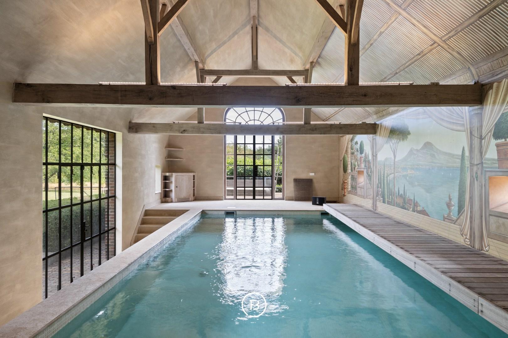 Totslot is dit landhuis voorzien van een wasruimte en wellnessgedeelte met een verwarmd inpandig zwembad, afgewerkt met Franse steen.