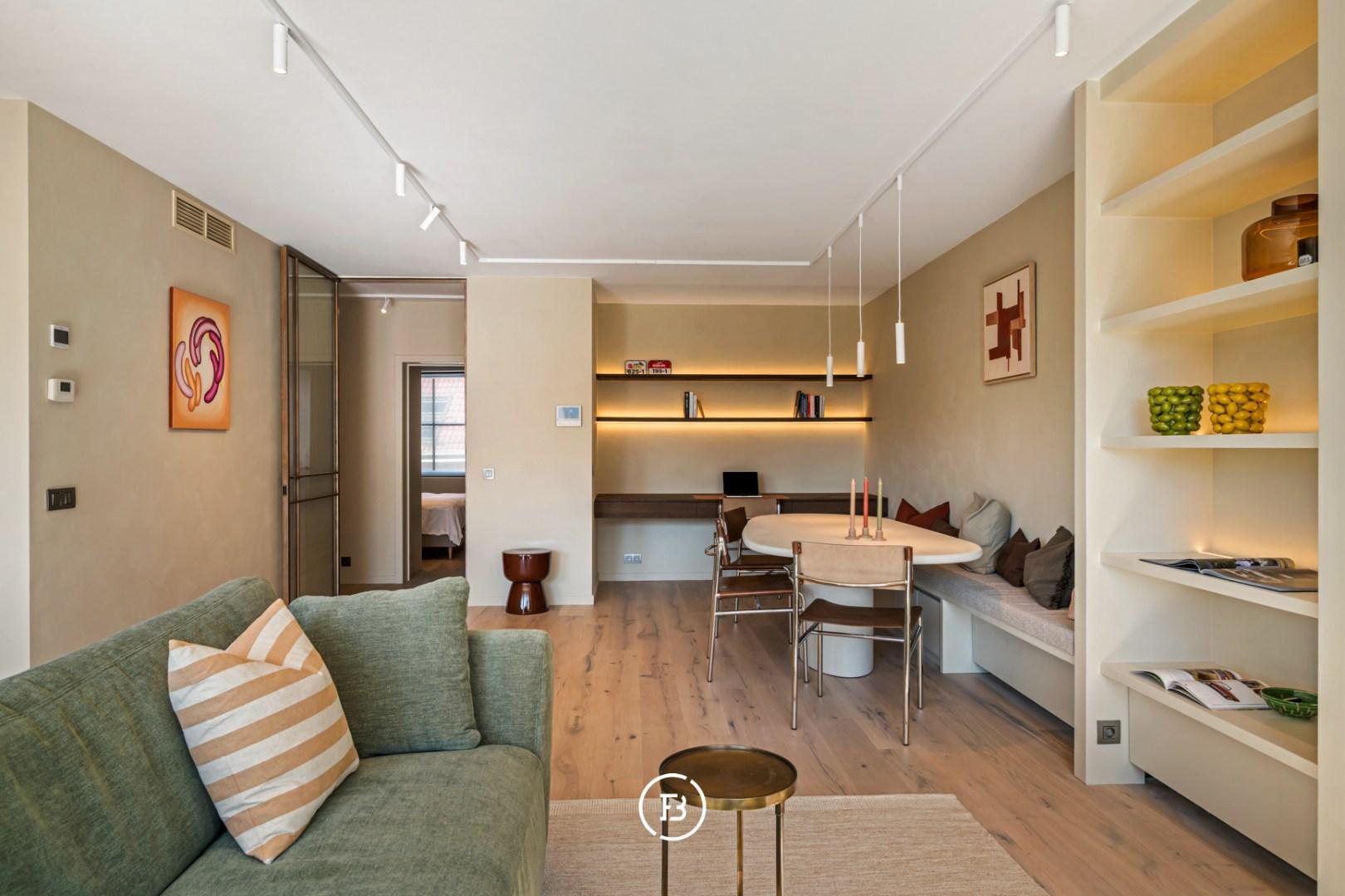 Dit appartement onderscheidt zich door zijn overvloed aan natuurlijk licht, kwalitatieve afwerking en geslaagde combinatie van karakter en modern wooncomfort.
