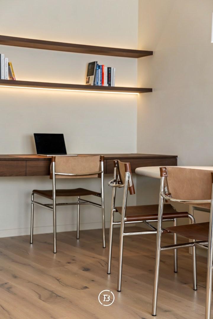 Indeling: Via de stijlvolle inkomhal met vestiaire en gastentoilet betreedt u de lichtrijke leefruimte. Deze is harmonieus ingedeeld en sluit naadloos aan op de open keuken. De leefruimte omvat een salon, eetplaats en een discreet geïntegreerde bureauruimte — ideaal voor thuiswerk.