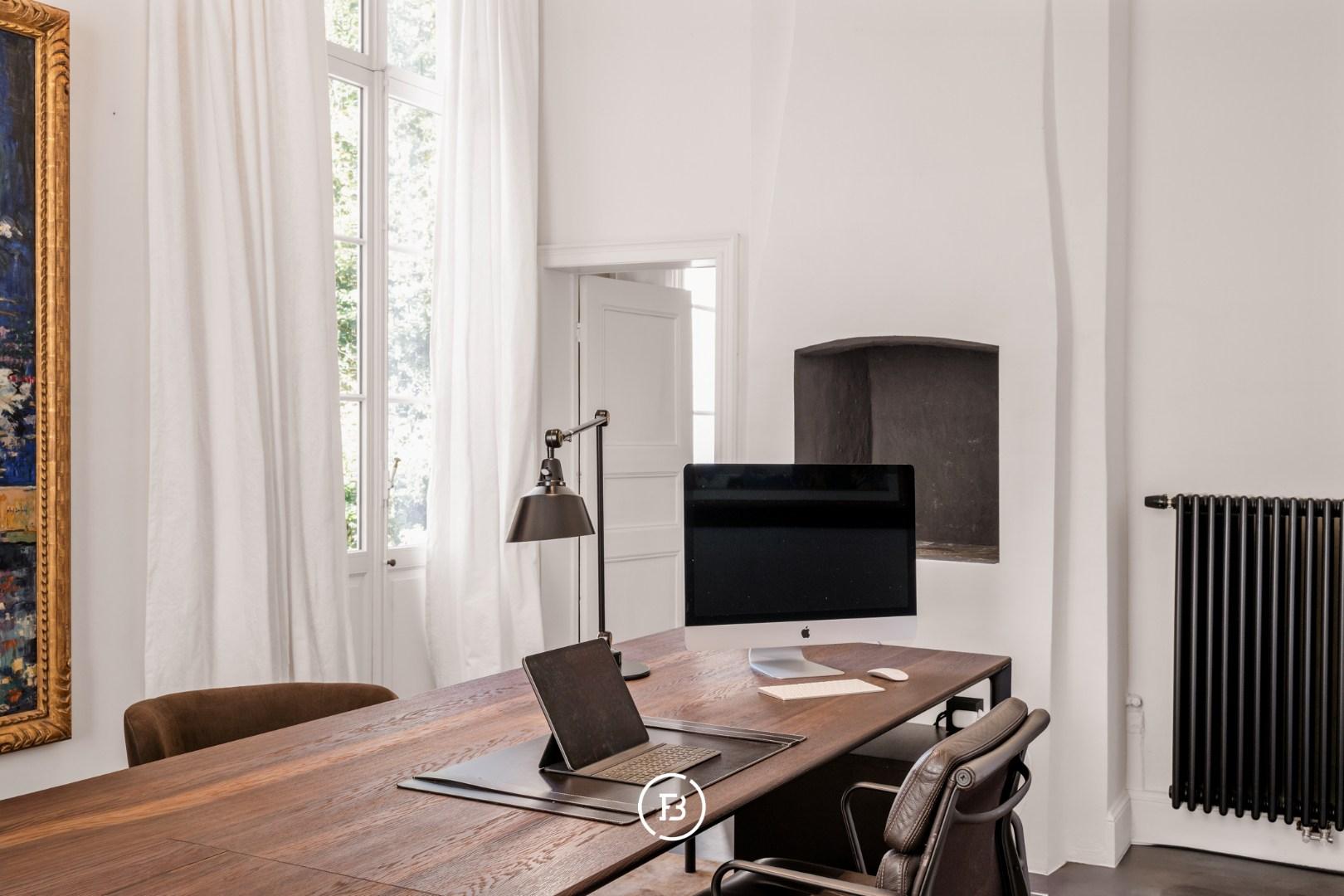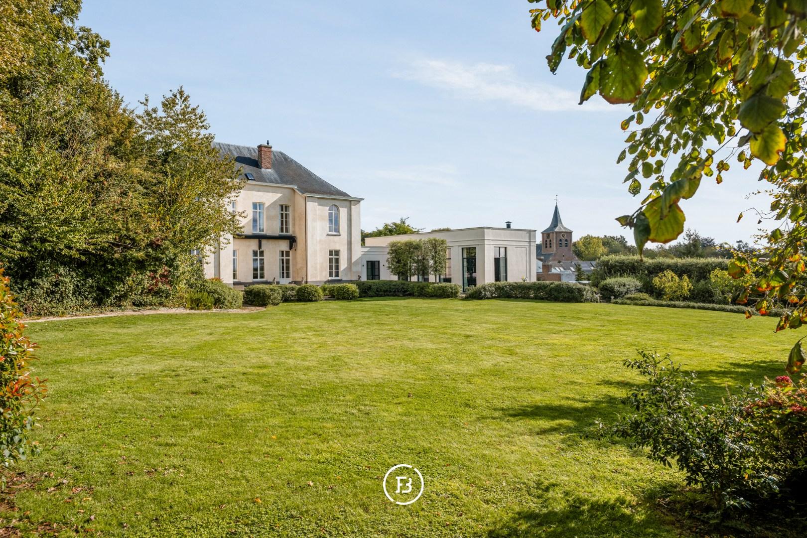 De pastorie en orangerie werden in 2022 met oog voor detail en kwaliteit herbouwd, waarbij warme materialen en moderne technieken harmonieus samenkomen. Binnenin wacht een lichtrijke leefruimte met open haard en grote raampartijen die een prachtig zicht bieden op de tuin. De eetplaats sluit naadloos aan op de orangerie, waar een maatwerkkeuken met premium toestellen het hart van het huis vormt.