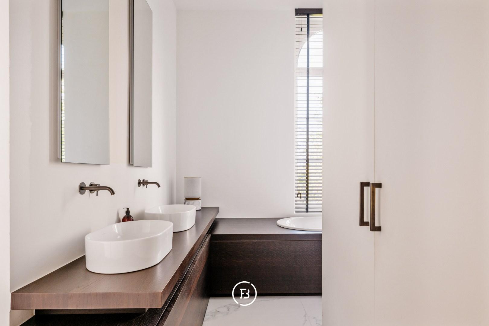 Op de eerste verdieping bevinden zich drie ruime slaapkamers, elk met een eigen badkamer, en een aparte wasruimte. De zolder biedt bijkomende mogelijkheden voor wie extra kamers of een hobbyruimte wil creëren.