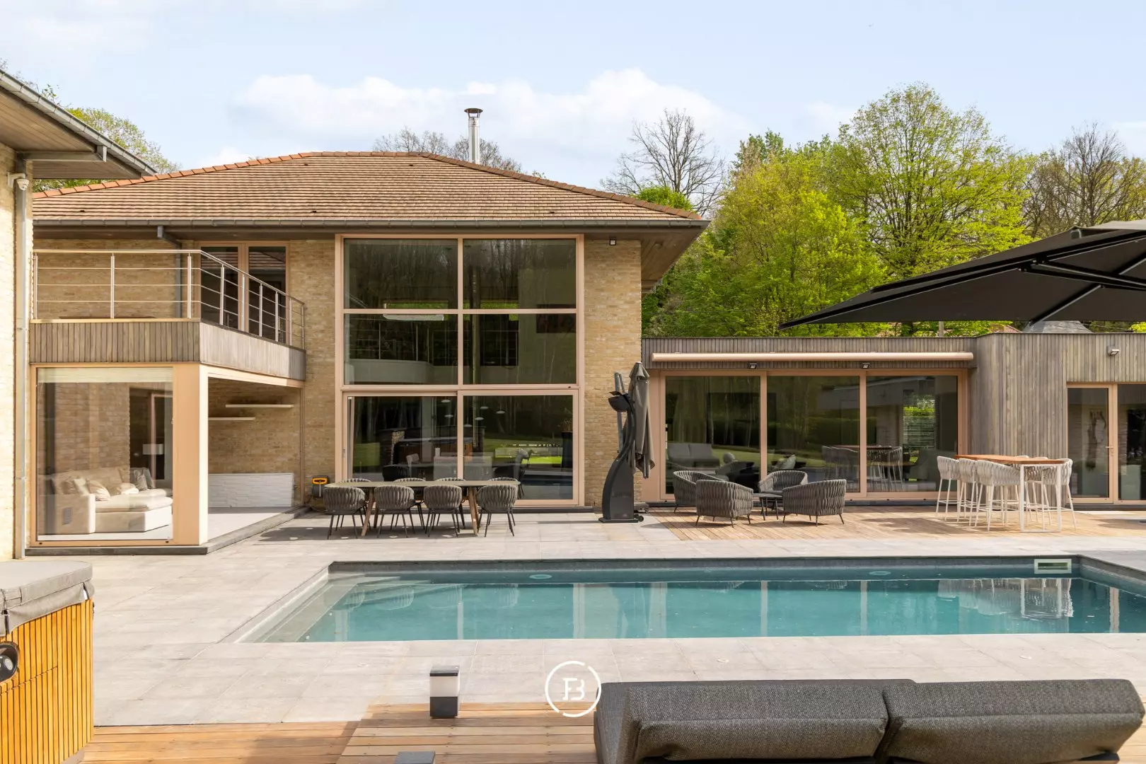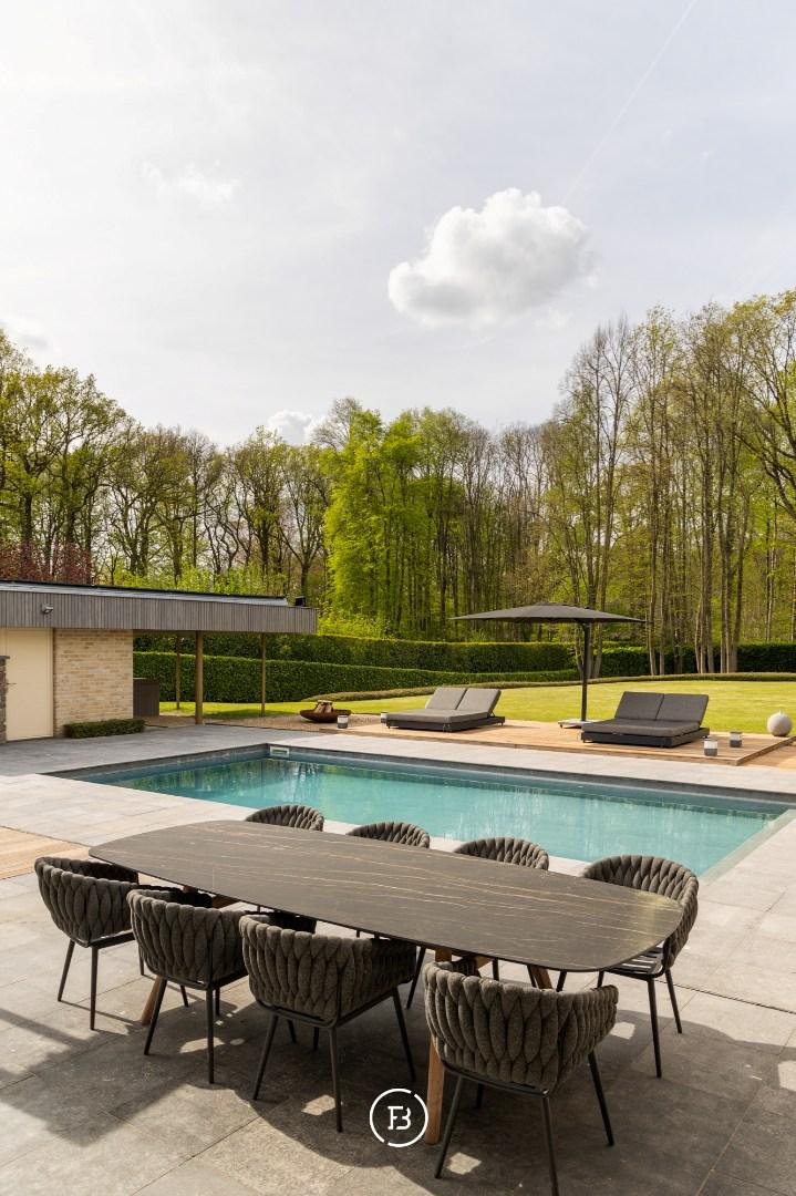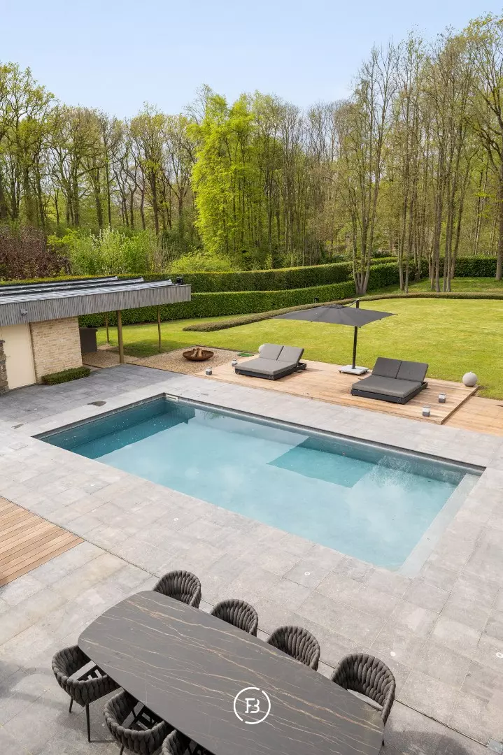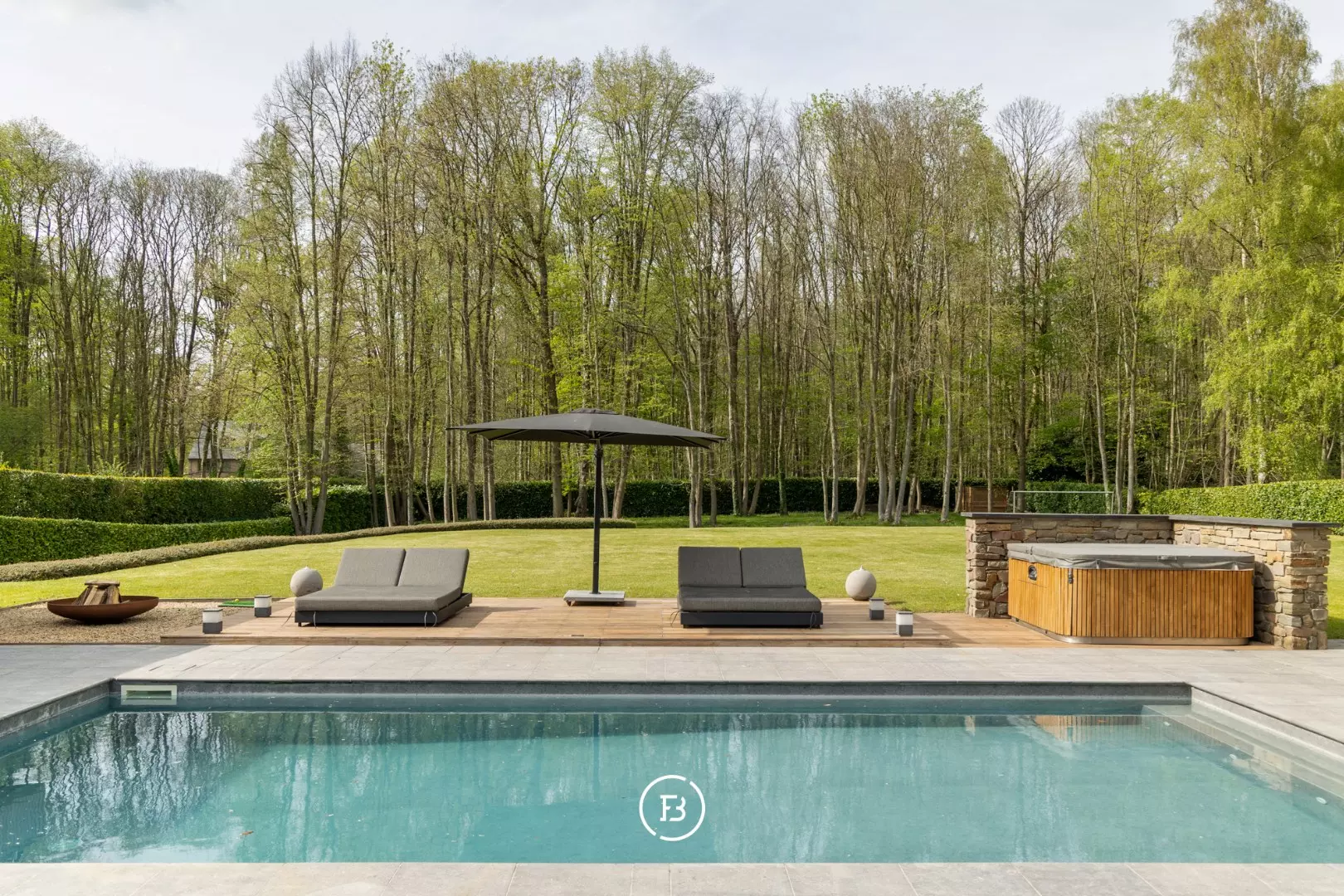 Gelegen op een prachtig aangelegd perceel van ca. 47 are, biedt deze eigendom een exclusieve tuin met zwembad en ruim zonneterras, een oase van rust en privacy.