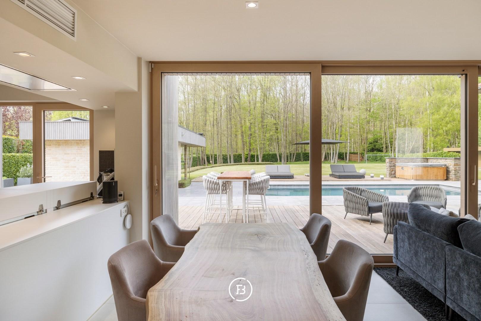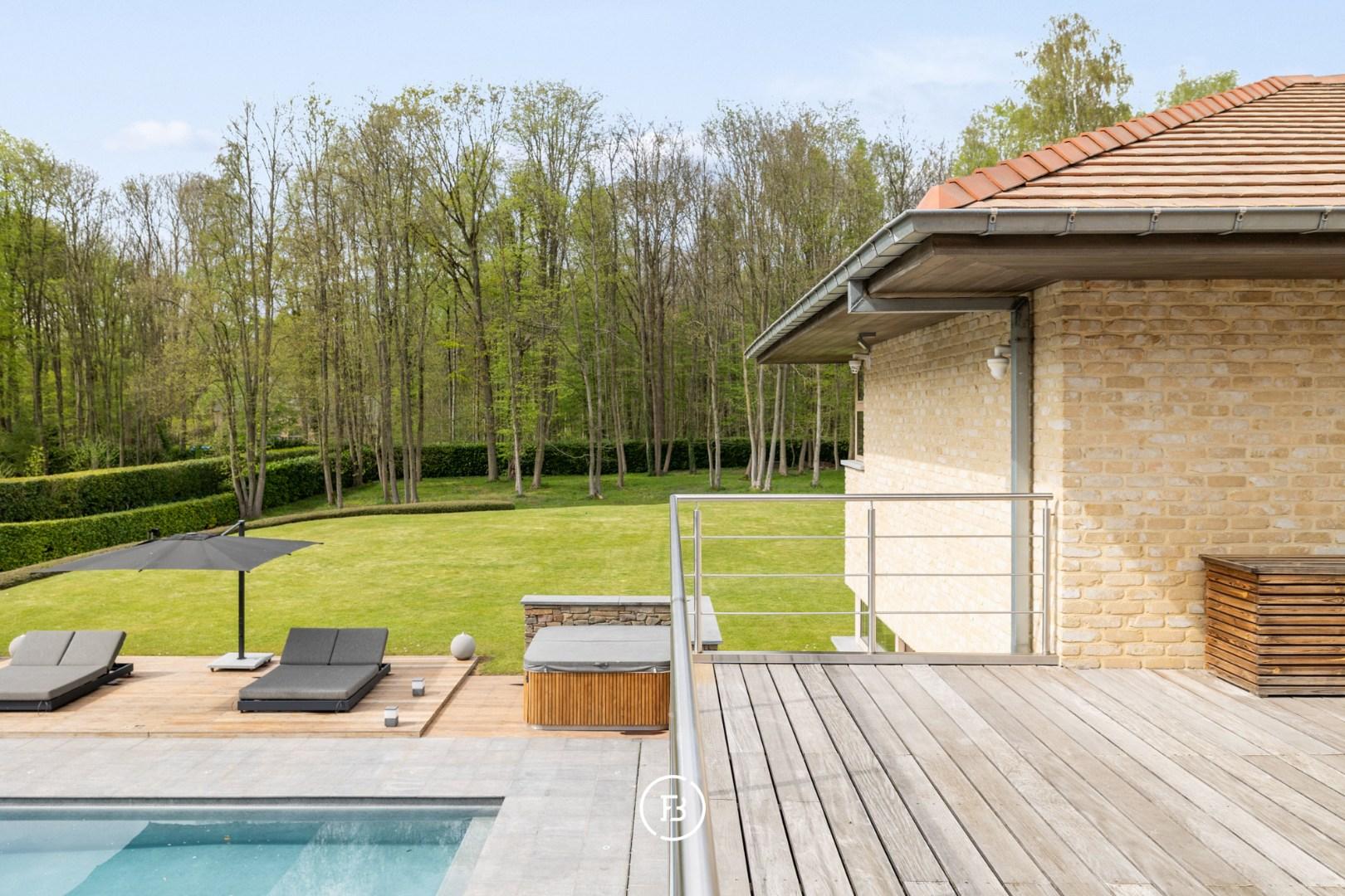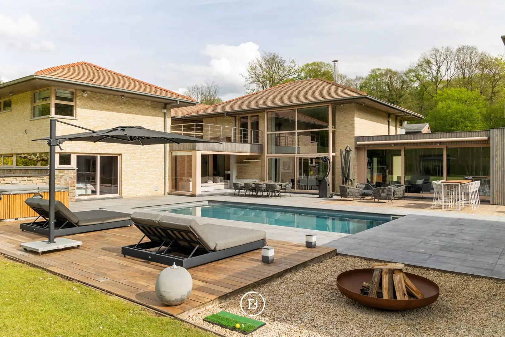 Gelegen op een prachtig aangelegd perceel van ca. 47 are, biedt deze eigendom een exclusieve tuin met zwembad en ruim zonneterras, een oase van rust en privacy.