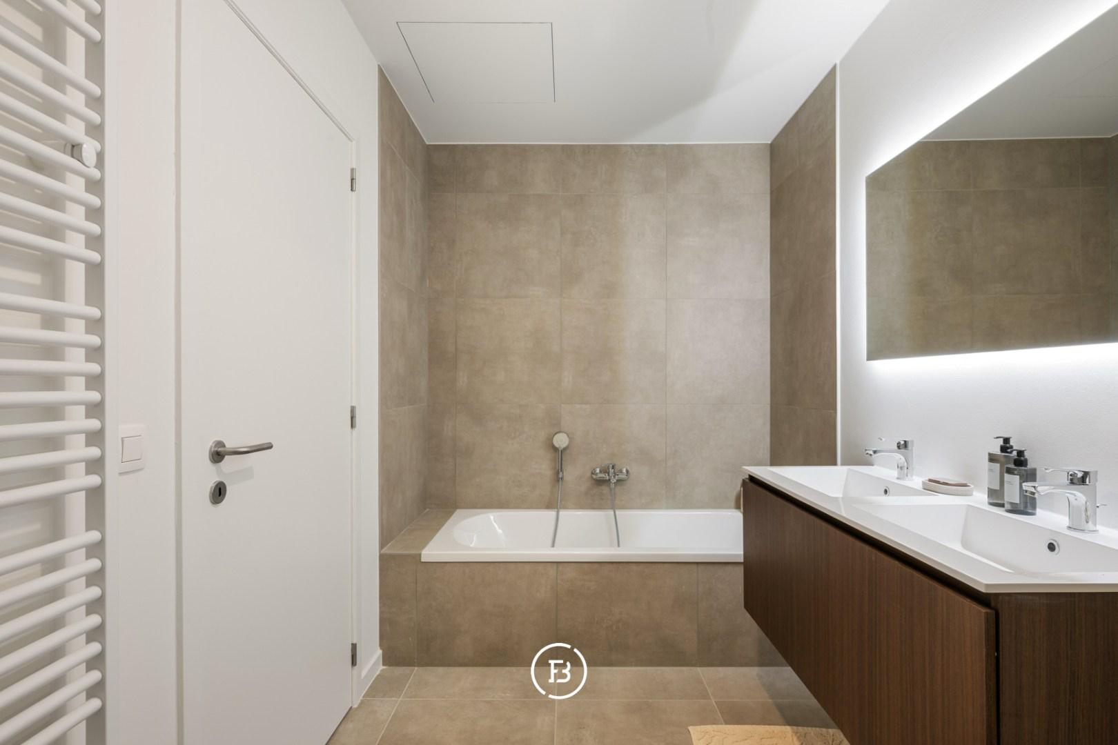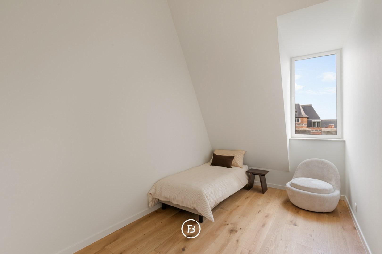 Het appartement beschikt over 3 volwaardige slaapkamers en 2 badkamers. De master bedroom heeft een ensuite badkamer met dubbele lavabo, ligbad, inloopdouche en een afzonderlijk toilet. Daarnaast is er ruimte voorzien voor een dressing die volledig naar eigen wens kan worden ingericht.
