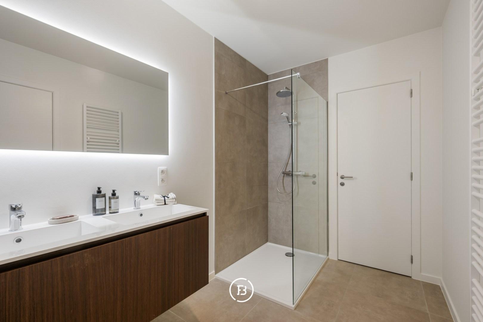 De twee bijkomende slaapkamers delen een tweede badkamer, uitgerust met dubbele lavabo en douche. Verder is er nog een aparte wasplaats aanwezig.