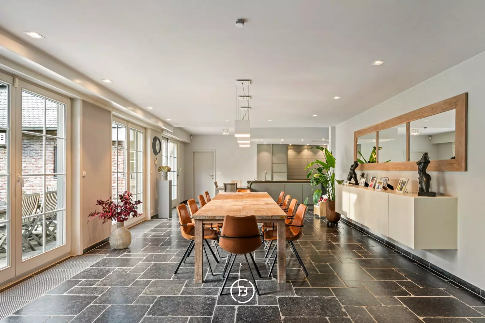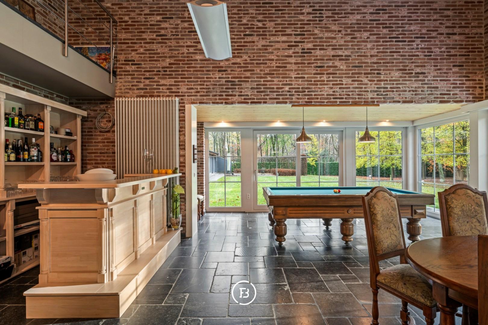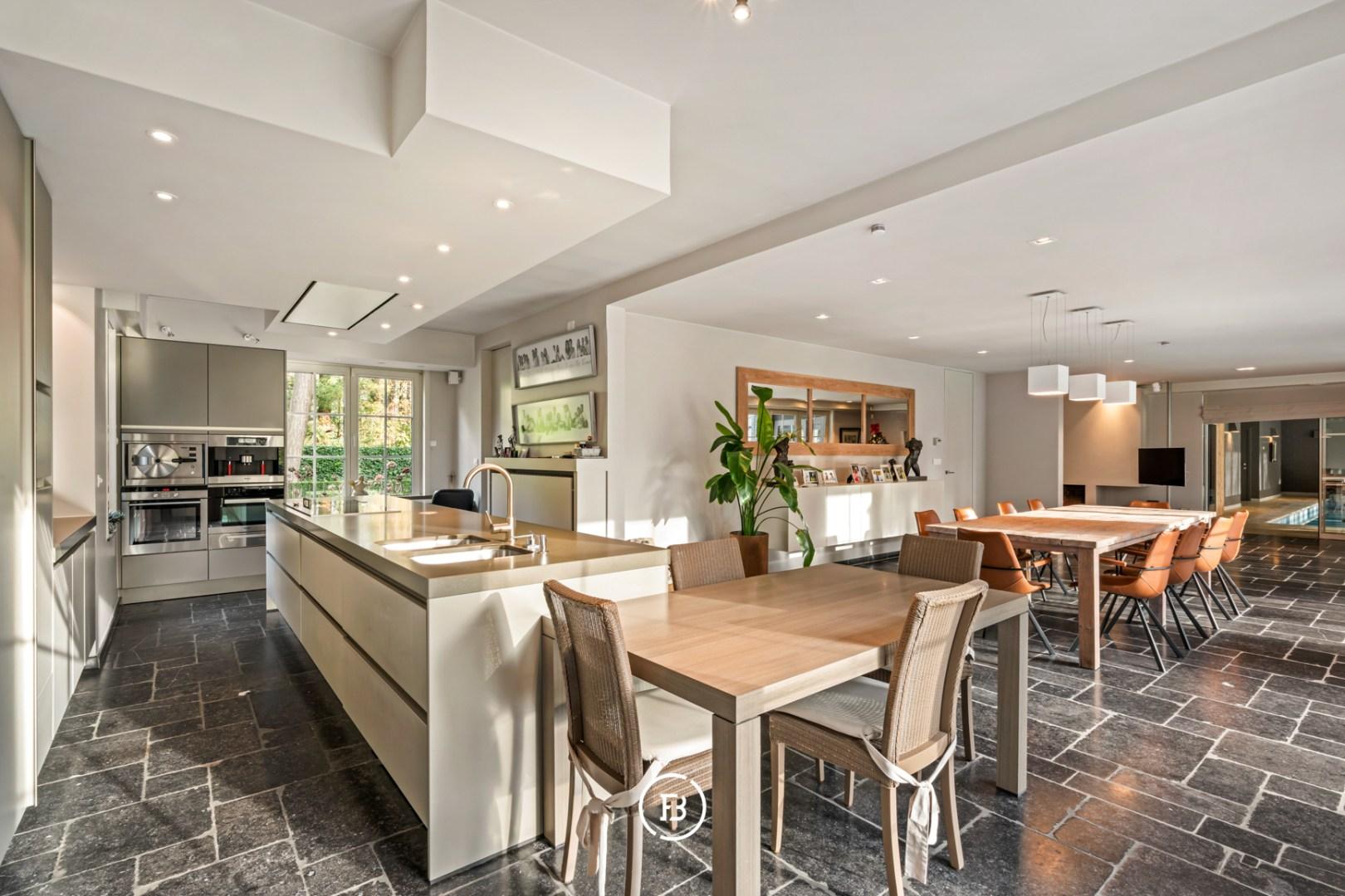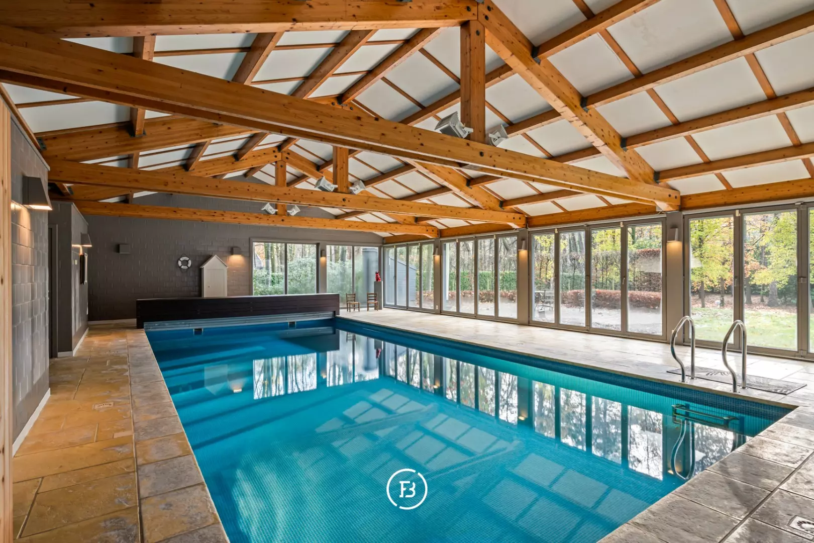 De villa beschikt over een indrukwekkende bewoonbare oppervlakte van maar liefst 718 m² en biedt een ruime en doordachte indeling. Er zijn zes volwaardige slaapkamers en twee badkamers, waaronder een master bedroom met ensuite badkamer en dressing. De leefruimtes bestaan uit een gezellige living, een eetruimte, een volledig uitgeruste keuken met bijkeuken en koelcel, een aparte bar en een bureel. Het binnenzwembad vormt een extra troef en creëert een unieke woonbeleving waarbij comfort en ontspanning harmonieus samenkomen.