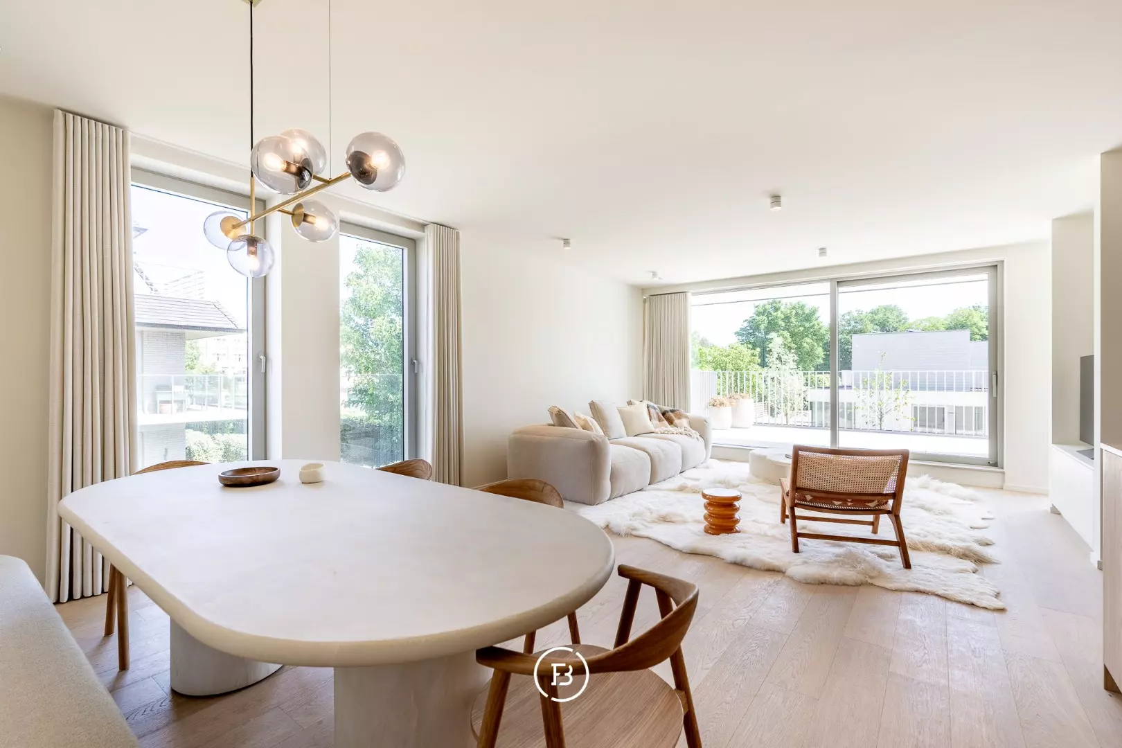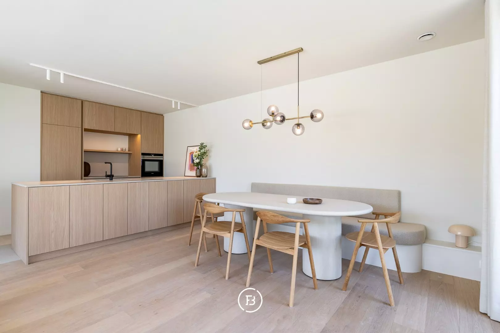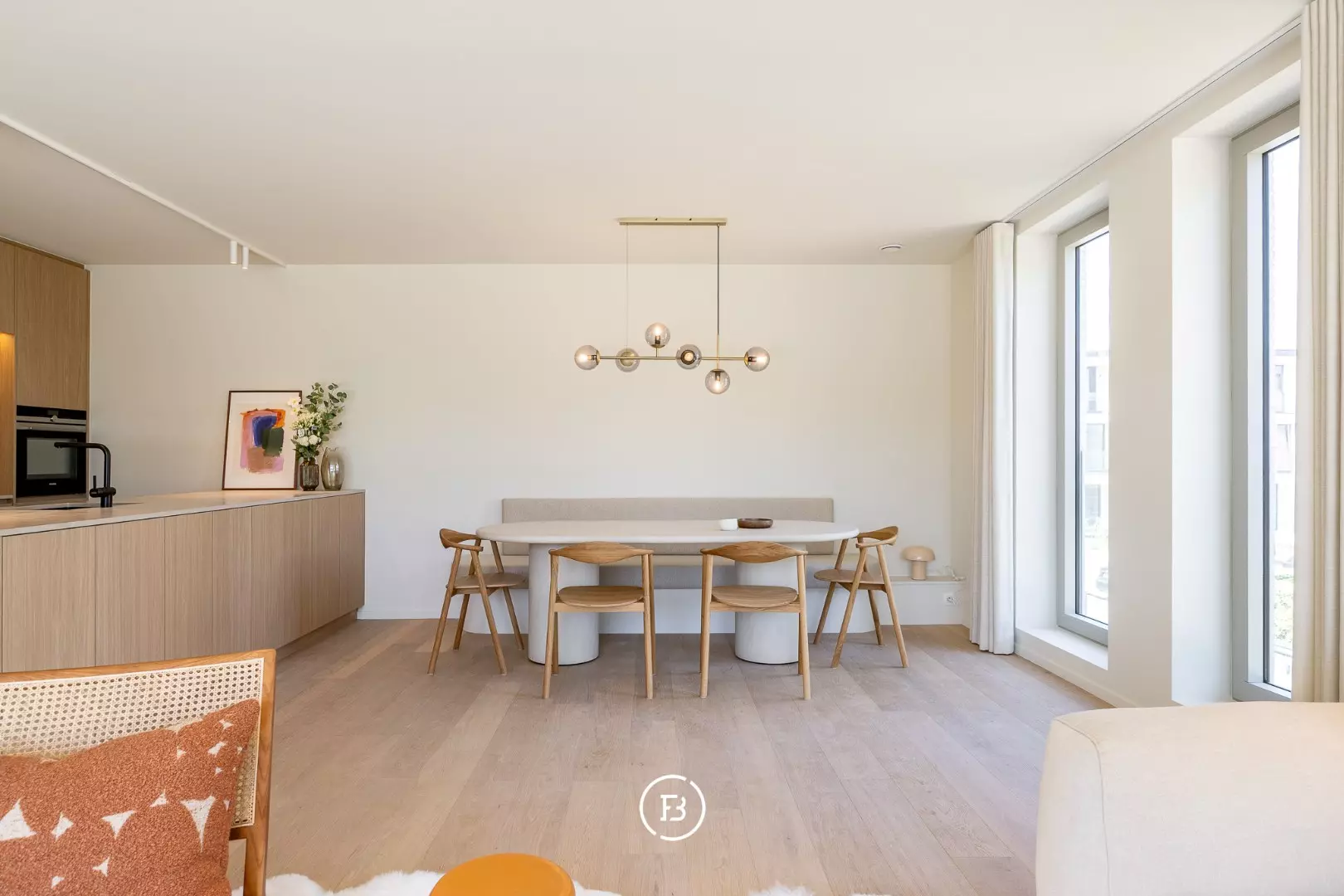 - Een lichtrijke leefruimte met open keuken