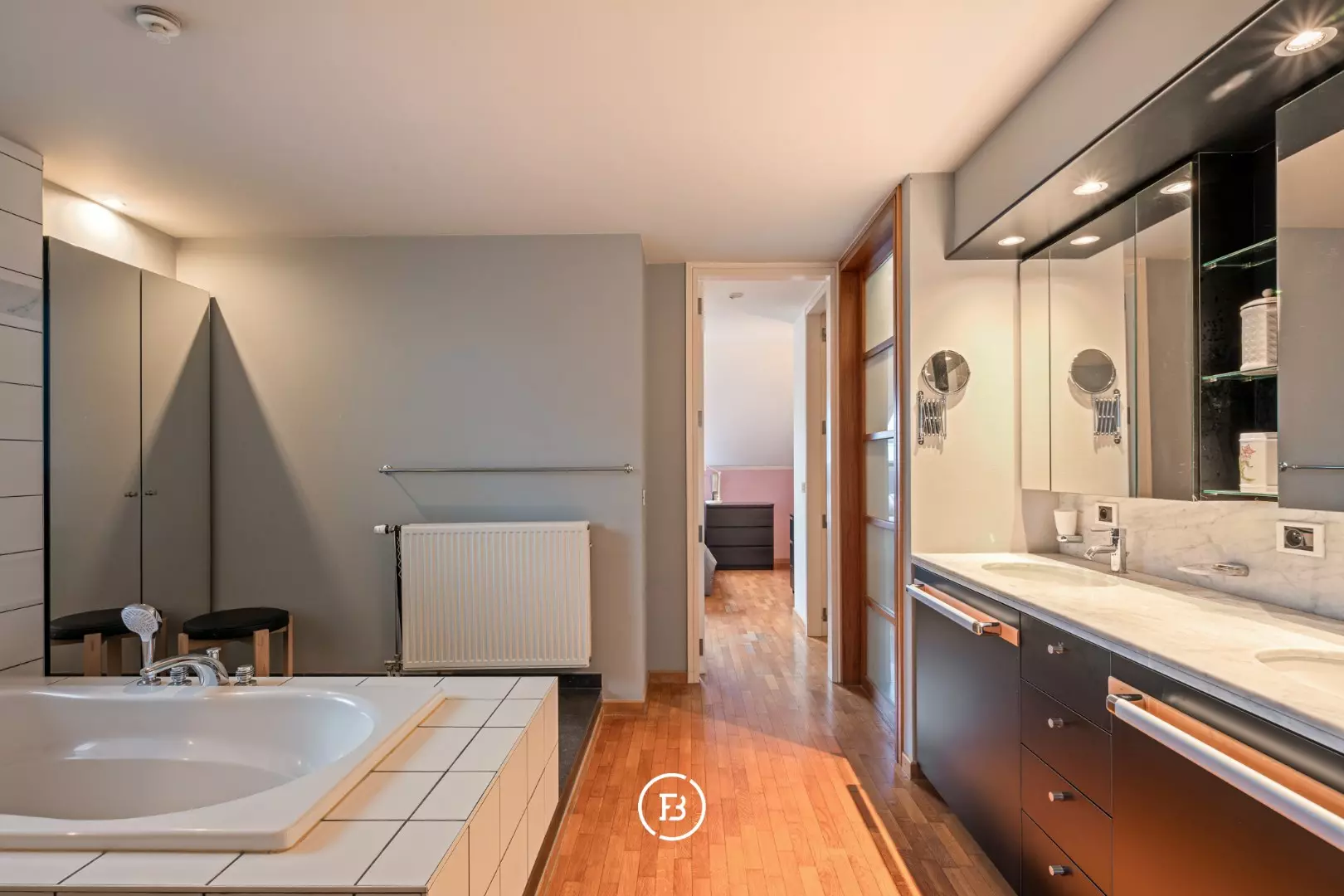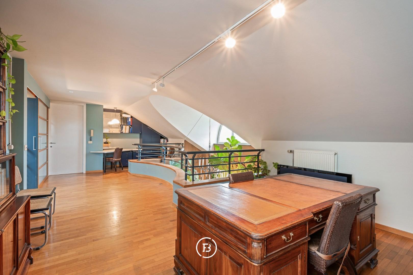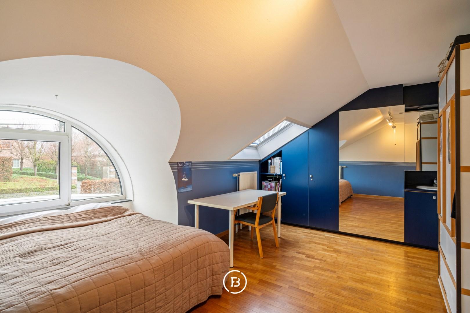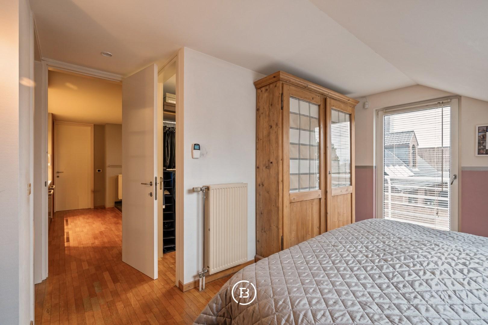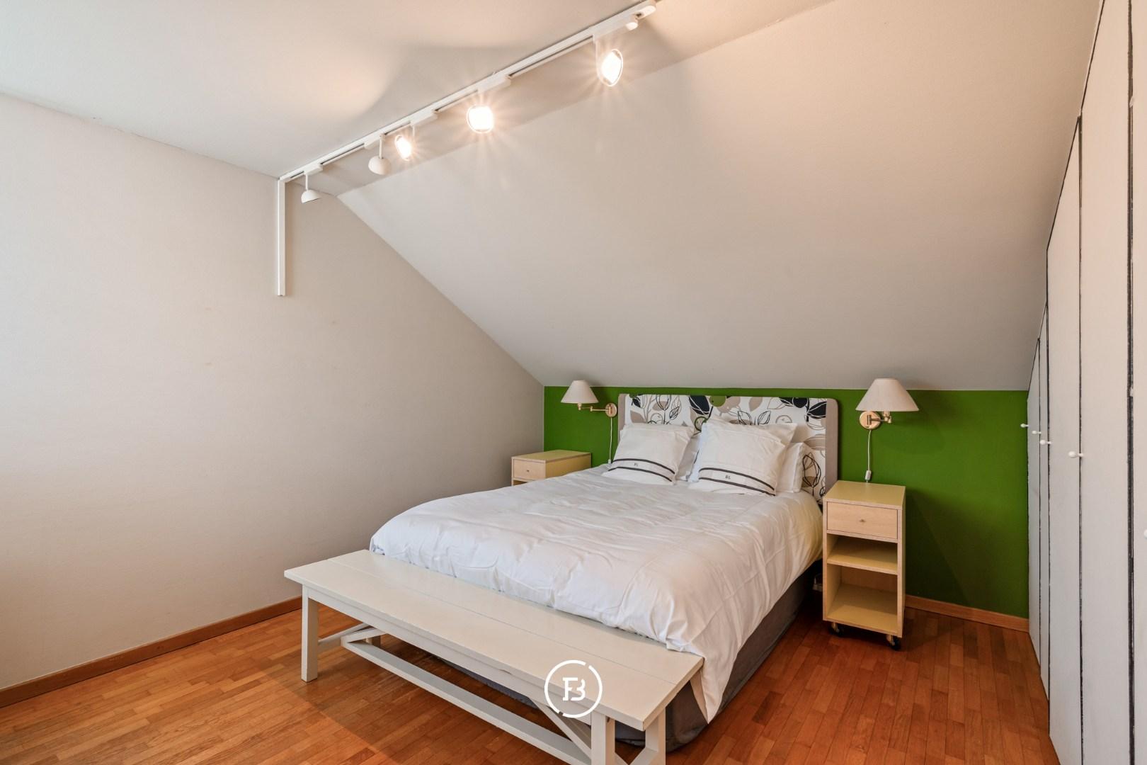 De nachthal met passerelle geeft toegang tot een polyvalente ruimte of tv-hoek. Verder vindt u hier de master bedroom met dressing, een ruime badkamer voorzien van ligbad, douche en dubbele lavabo en een afzonderlijk toilet op de gang. Daarnaast zijn er nog drie slaapkamers, voorzien van ingemaakte kasten en wastafel. Tot slot beschikt deze verdieping over een wasplaats en een aparte strijkkamer/berging (eventueel om te vormen tot tweede badkamer).