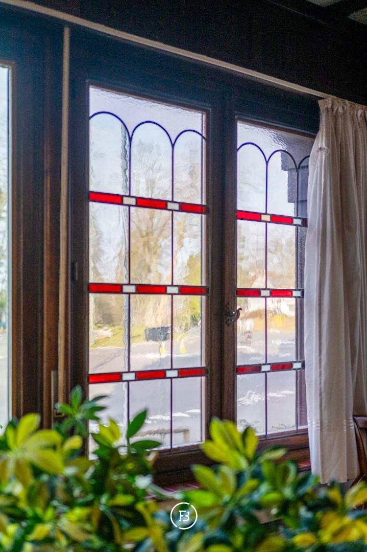 - Gelijkvloers: lichtrijke leefruimte met openhaard, eetruimte, aparte keuken, bureau, TV-kamer met ensuite badkamer en veranda