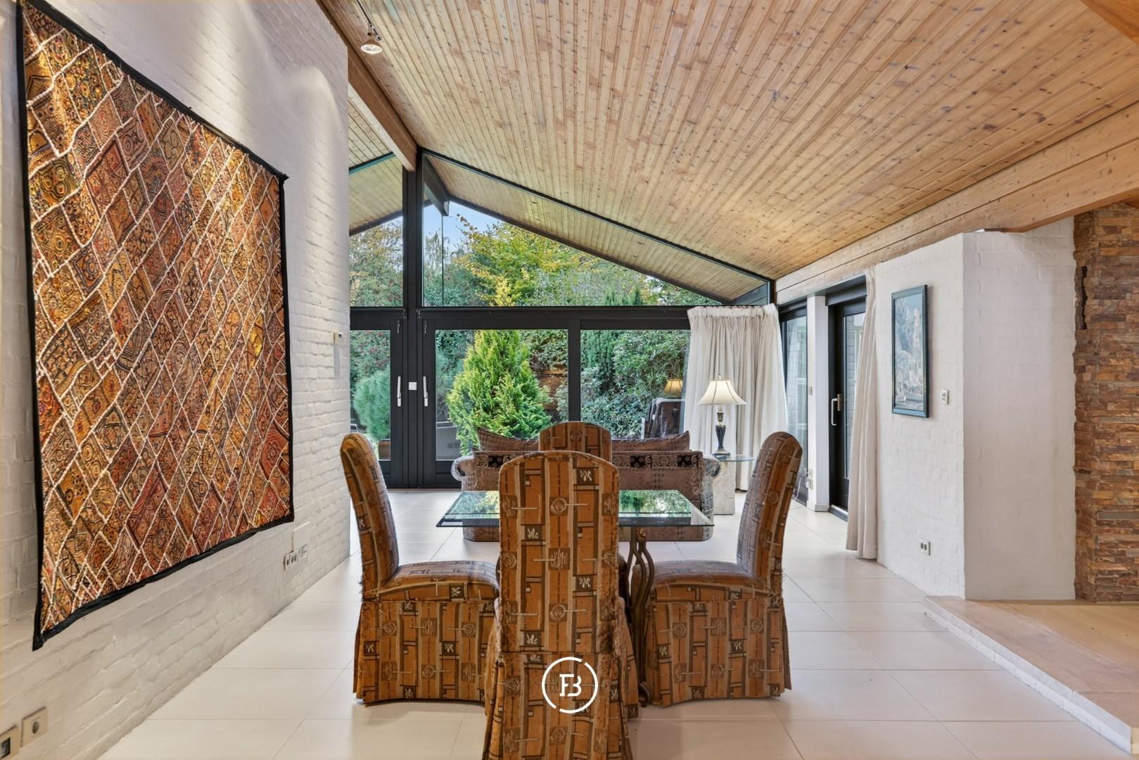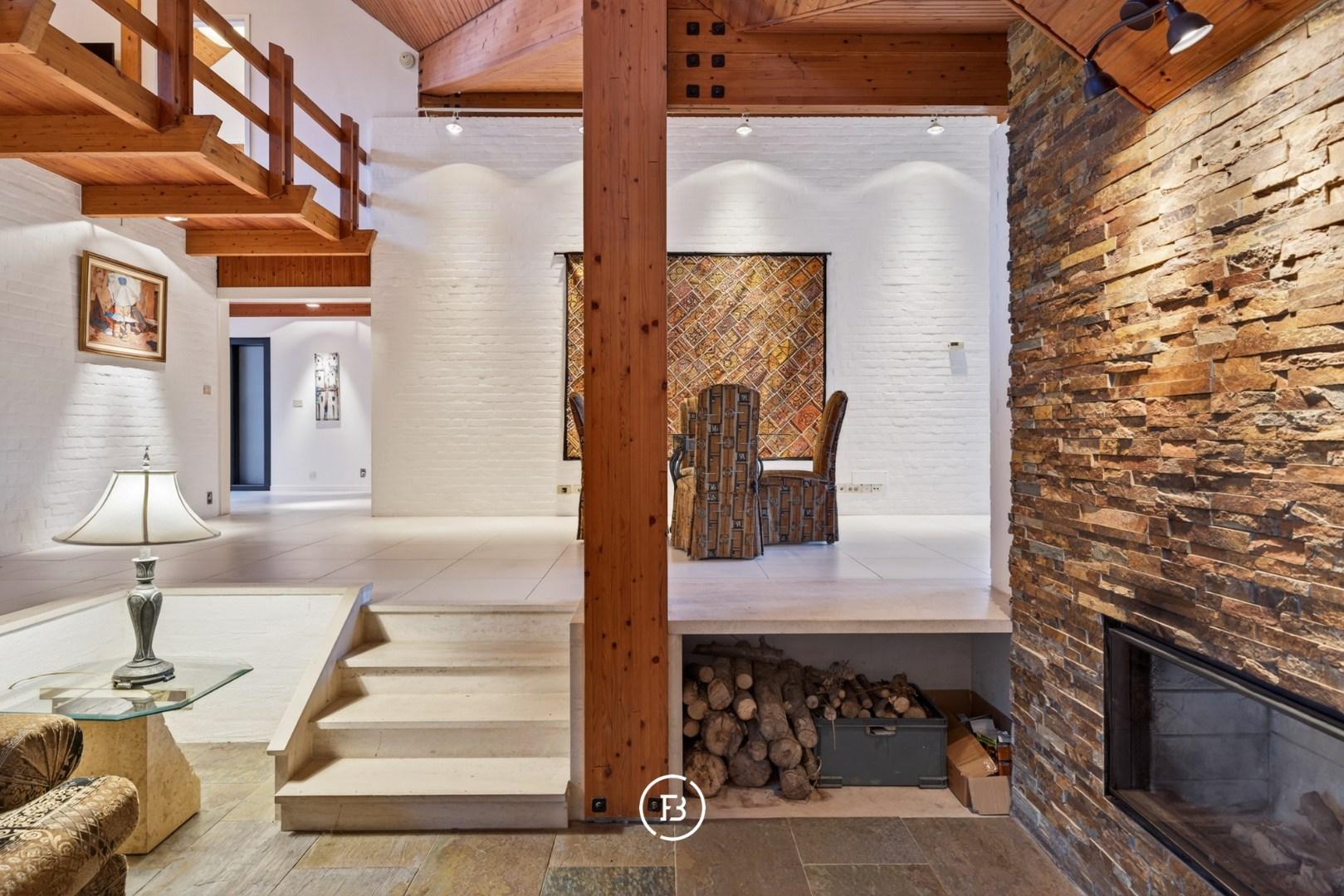 Gelijkvloers (0): Inkomhal met vestiaire en gastentoilet, ruime leefruimte met zithoek en eetplaats, volledig uitgeruste keuken met bijkeuken, veranda, masterbedroom met dressing en ensuite badkamer, wasplaats, berging en atelierruimte.