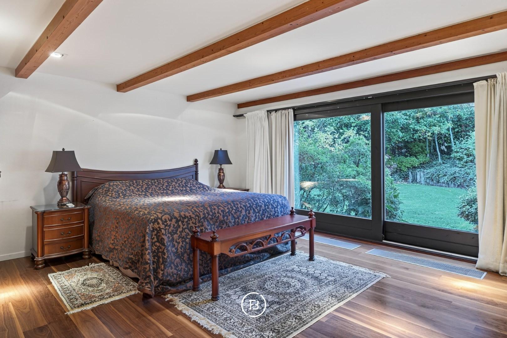 Verdieping (+1): mezzanine met bureauruimte, twee slaapkamers met ensuite badkamer, kinderkamer en extra opbergruimte.