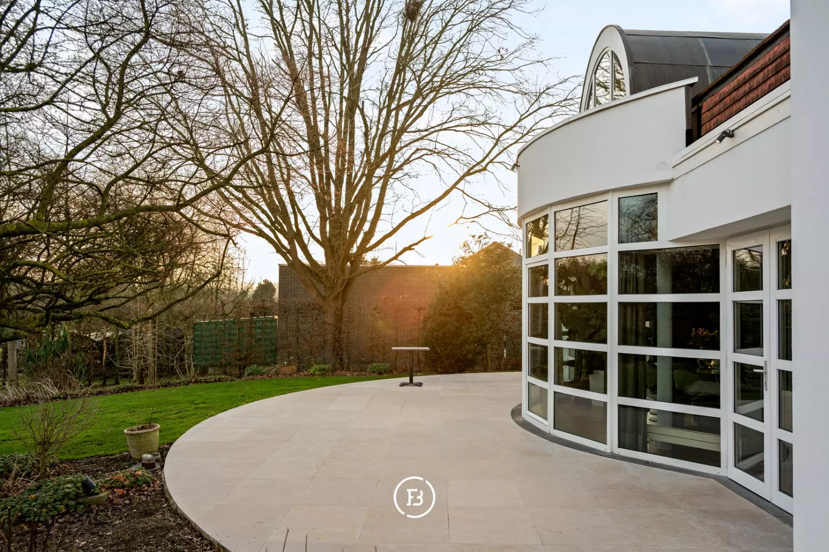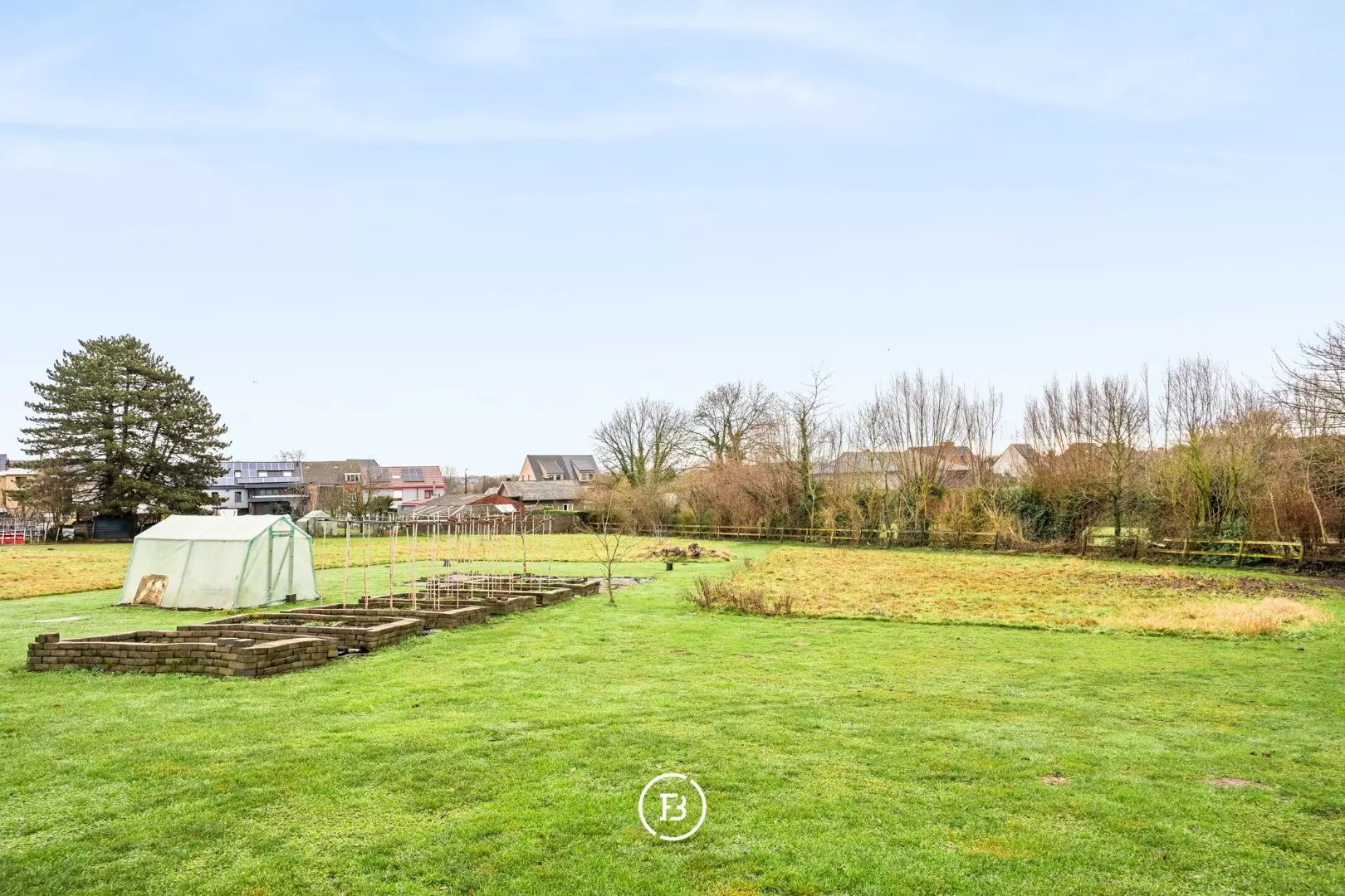 Via de inkomhal met trappenhal en gastentoilet betreedt u het lichtovergoten woongedeelte. De leefruimte combineert een gezellige zithoek met eetplaats en sluit aan op de vernieuwde keuken met ontbijthoek, die geniet van een prachtig zicht op de tuin. De keuken is afgewerkt met hoogwaardige materialen zoals Carrara marmer en een blauwe hardstenen vloer, en is uitgerust met kwalitatieve toestellen (V-Zug combi-/stoomoven en oven, Miele vaatwasser). Aansluitend bevindt zich een praktische bijkeuken/berging met aparte toegang tot de tuin.