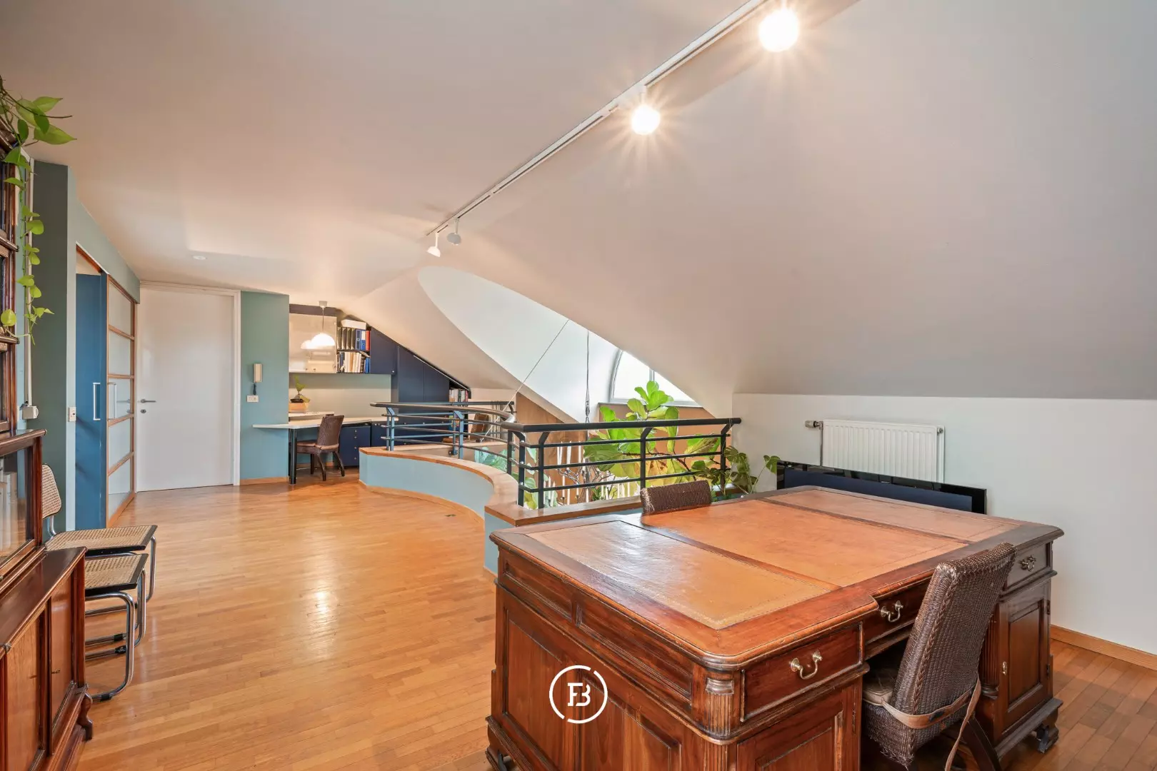De nachthal met passerelle geeft toegang tot een polyvalente ruimte of tv-hoek. Verder vindt u hier de master bedroom met dressing, een ruime badkamer voorzien van ligbad, douche en dubbele lavabo, en een afzonderlijk toilet op de gang. Daarnaast zijn er nog drie slaapkamers, voorzien van ingemaakte kasten en wastafel. Tot slot beschikt deze verdieping over een wasplaats en een aparte strijkkamer/berging (eventueel om te vormen tot tweede badkamer).