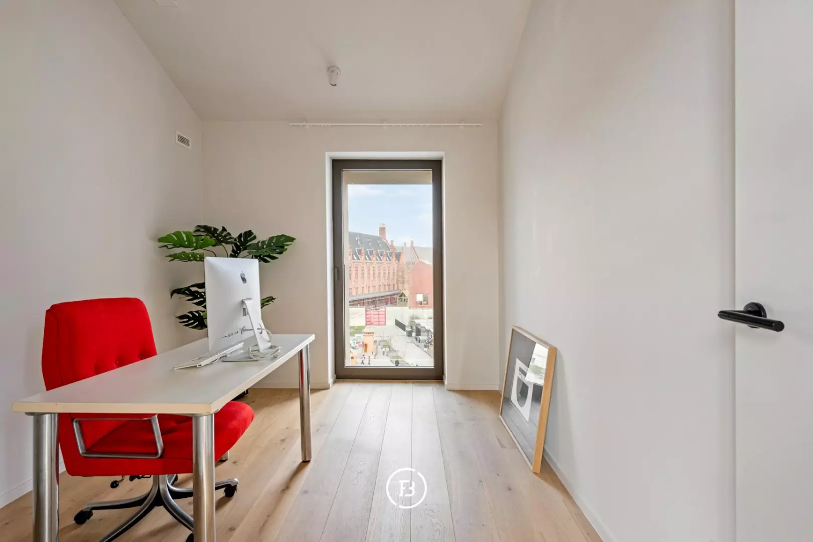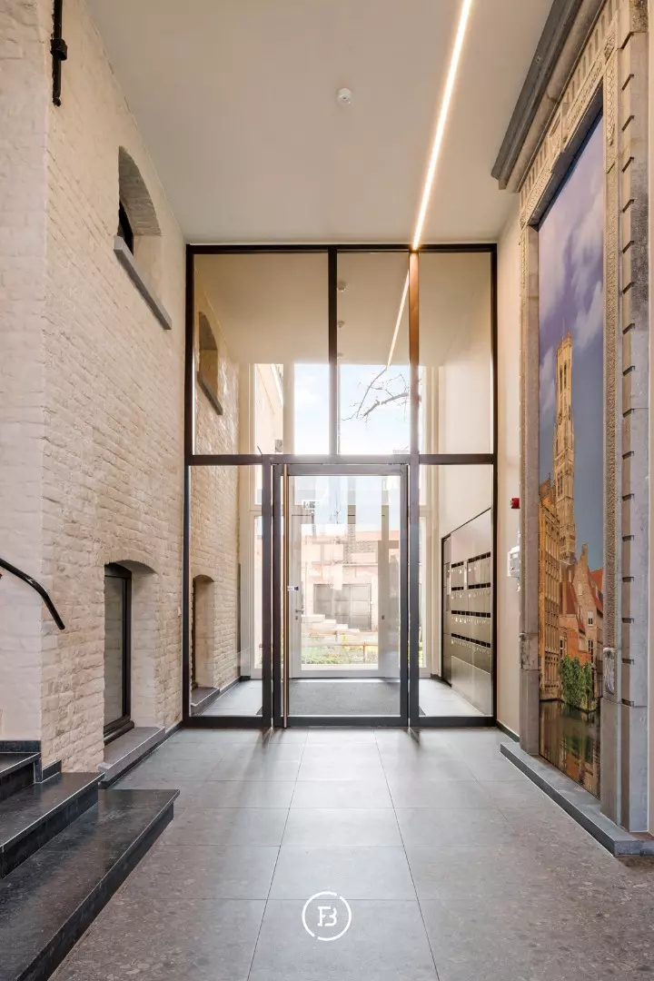 Als extra troef heeft u toegang tot het prachtige gemeenschappelijke dakterras met indrukwekkende zichten over de Brugse binnenstad. Daarnaast beschikt het appartement over een ruime private kelderberging en een gemeenschappelijke fietsenberging. Er is bovendien de mogelijkheid om een garagebox in de residentie aan te kopen.