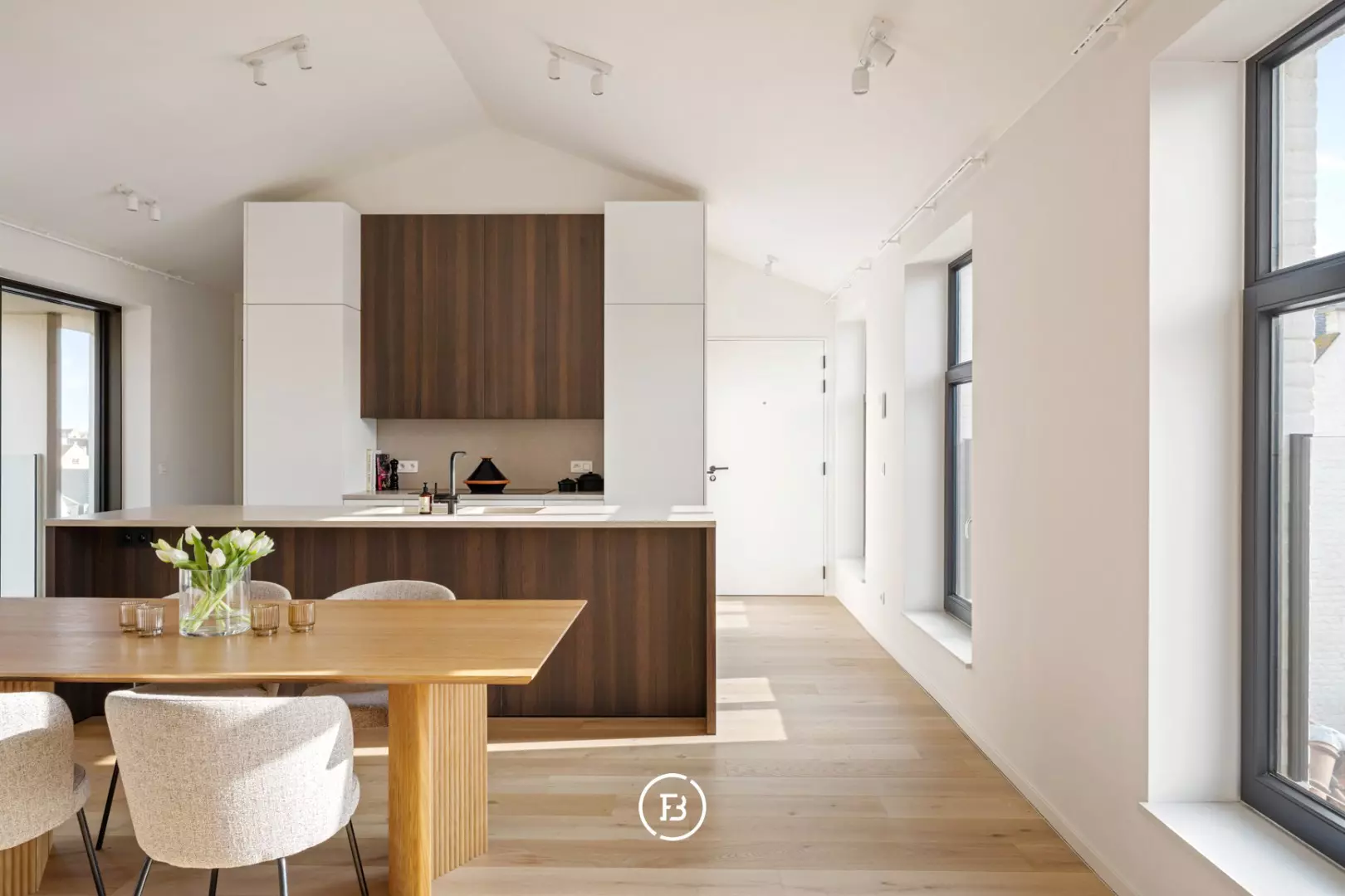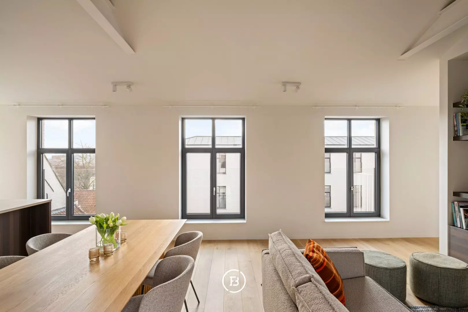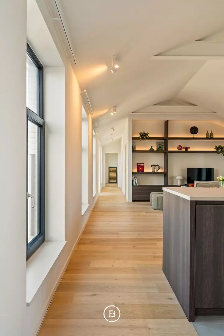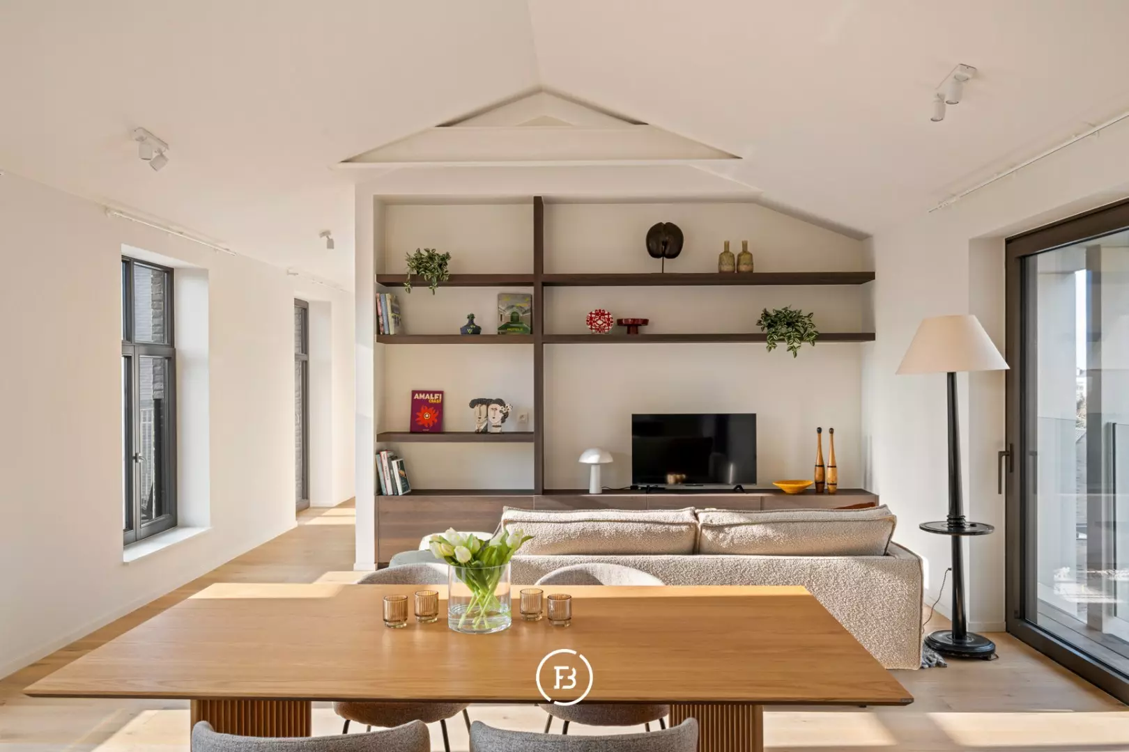 Het lichtrijke appartement van 120 m² bevindt zich op de derde en bovenste verdieping. Dankzij de grote glaspartijen aan beide zijden baadt het appartement in natuurlijk licht en geniet u van een mooi zicht op de historische kloostertuin.